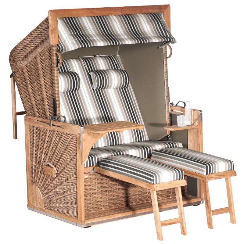 Sonnenpartner Sonnenpartner Admiral Teak 2-Sitzer XL Strandkorb 3/4-Liegemodell antik braun