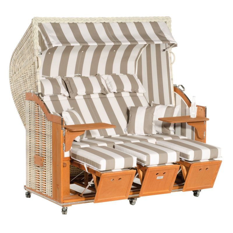 Sonnenpartner Sonnenpartner Classic 3-Sitzer Strandkorb Halbliegemodell Ostsee antikweiß/grau