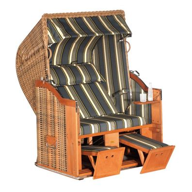 • Sonnenpartner Strandkorb Classic 2-Sitzer Liegemodell mit seitlichen Bullaugen Kunst