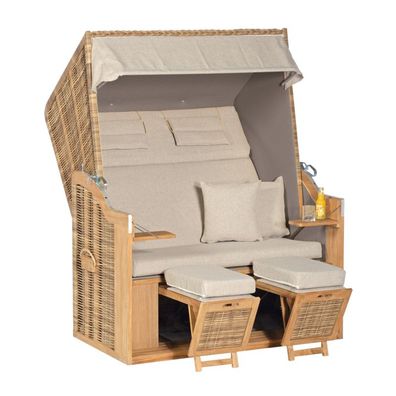 • Sonnenpartner Rustikal 34 Z Teak XL 2-Sitzer Strandkorb Halbliegemodell natura-antik