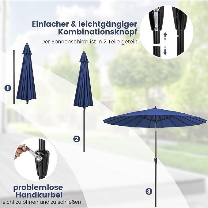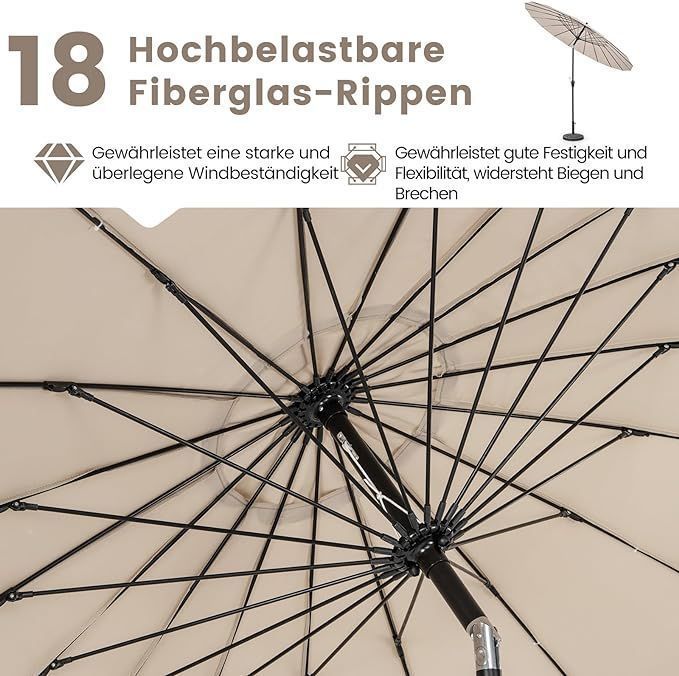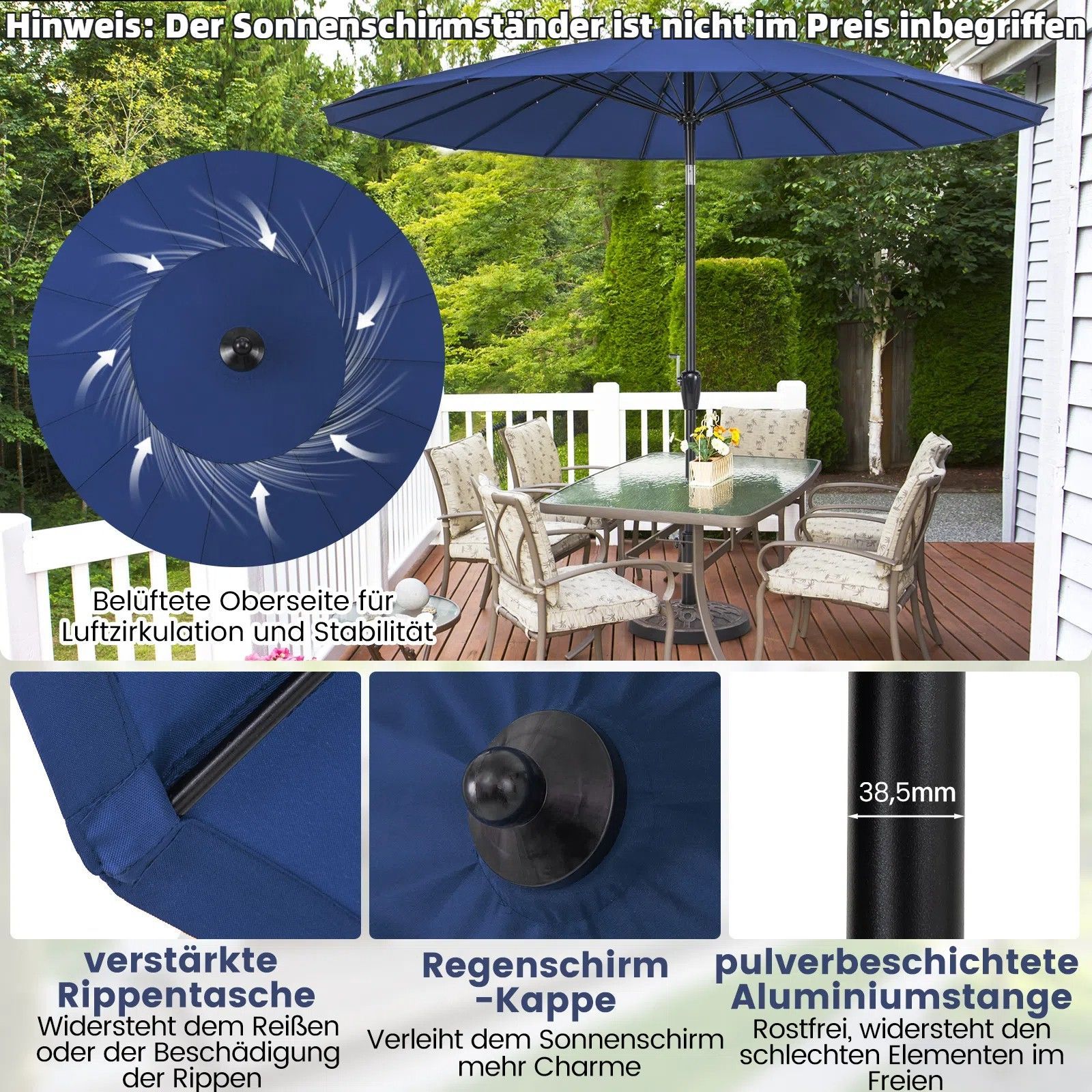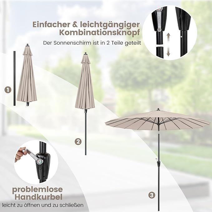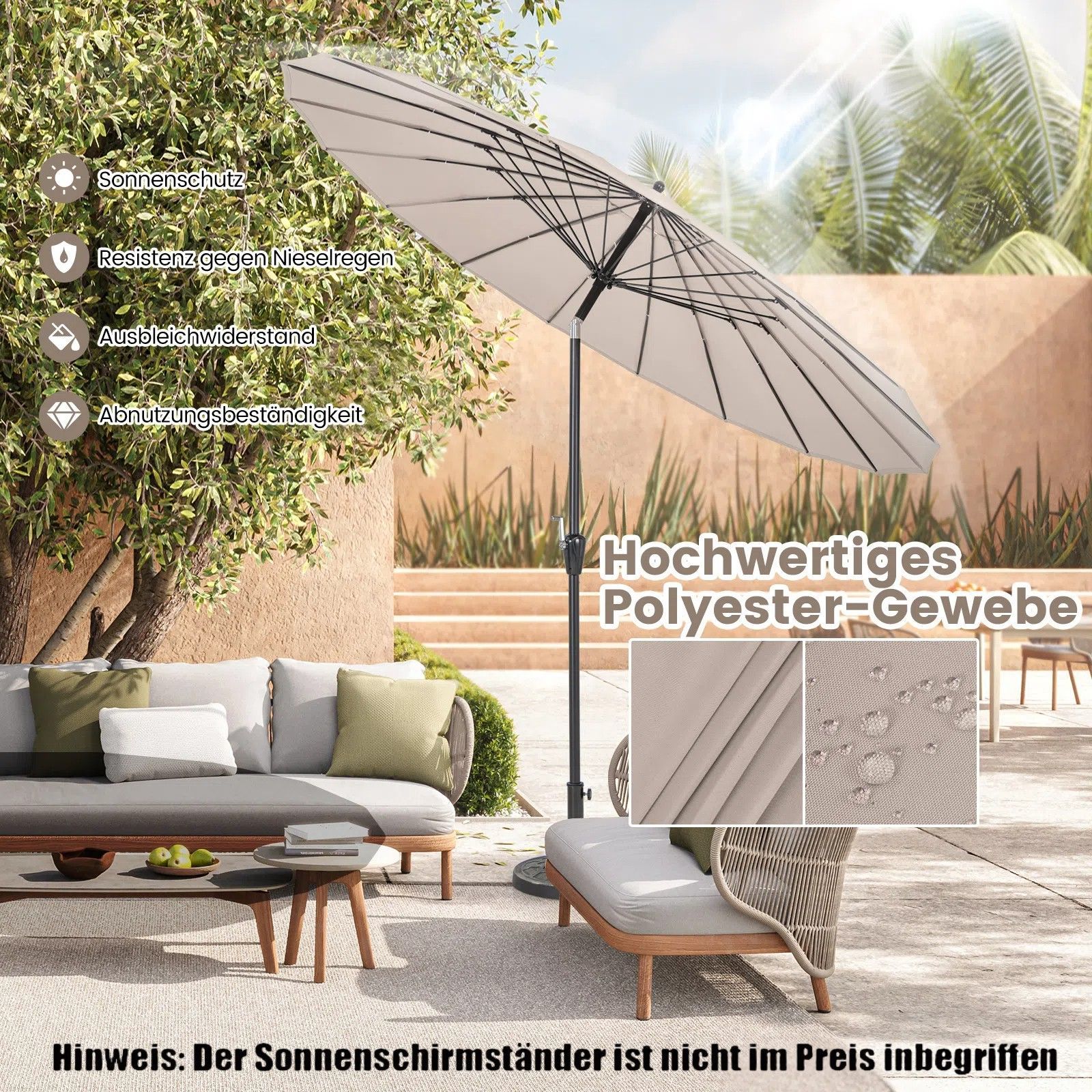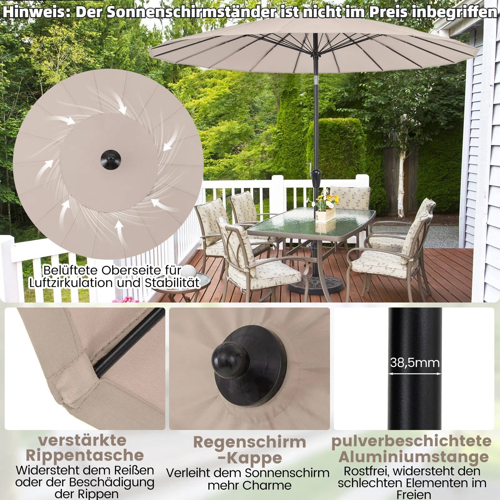 Sonnenschirm 265 cm, Gartenschirm mit Kurbel zum öffnen/ Schließen, Terrassenschirm
