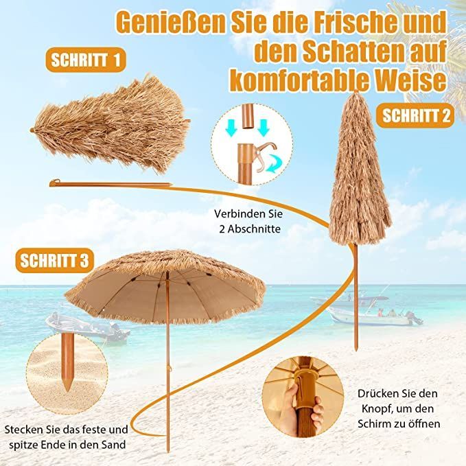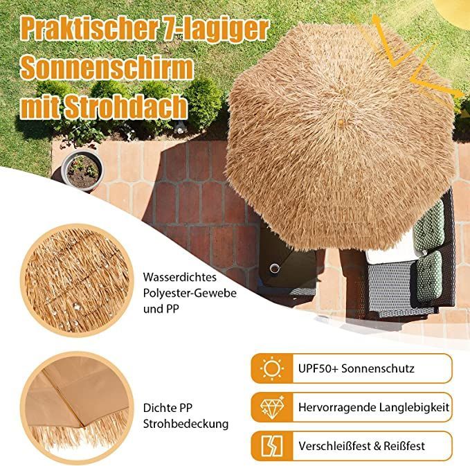 Sonnenschirm Hawaii Strandschirm Stroh Gartenschirm Strohschirm neigbar Garten