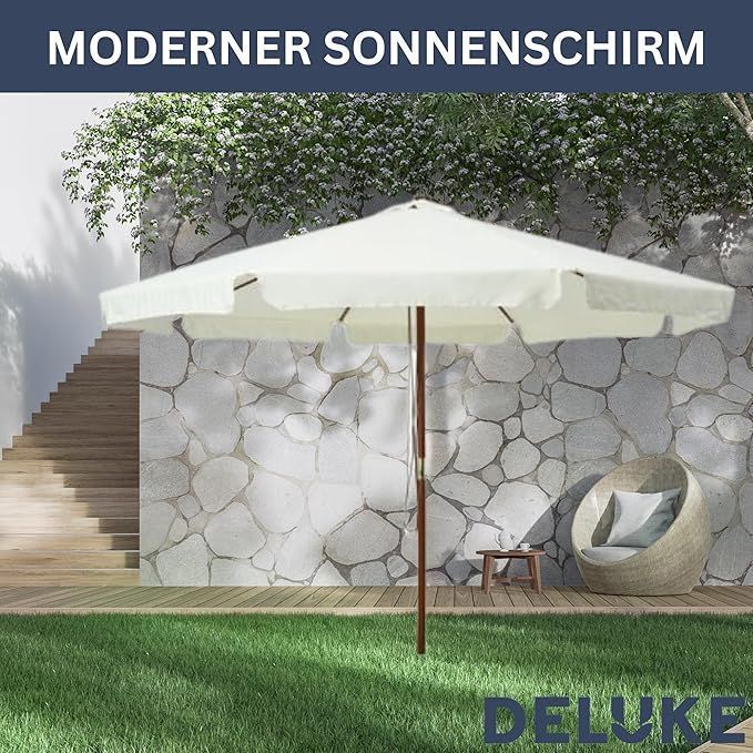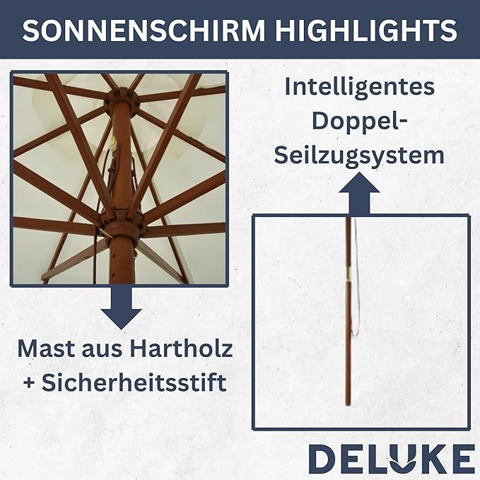 Sonnenschirm Holz PAUL SandweißHxB 254x330cm Sonnenschirm 330 cm Kurbelschirm