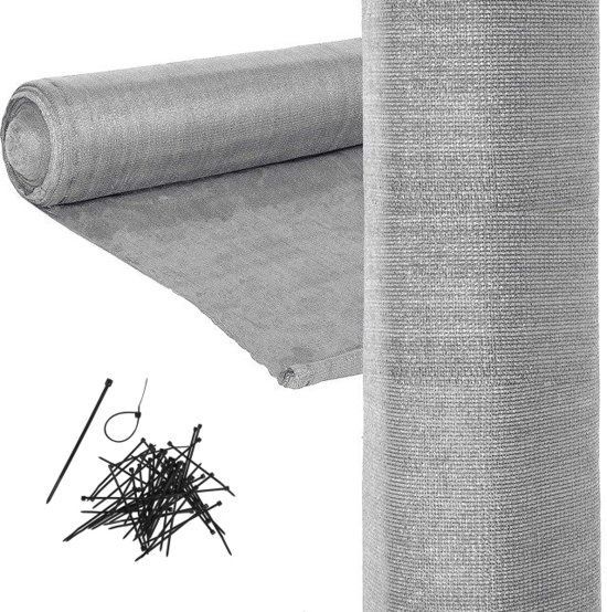 Sonnenschutznetz für Terrasse - 90% UV-Schutz - 1,5 x 50 m - Grau - Inkl. Montageset