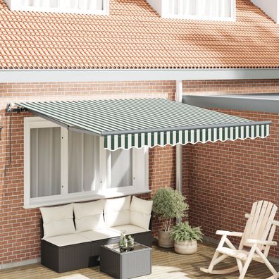 • vidaXL Manuelles ausziehbares Sonnensegel in Grün und Weiß, 350 x 250 cm