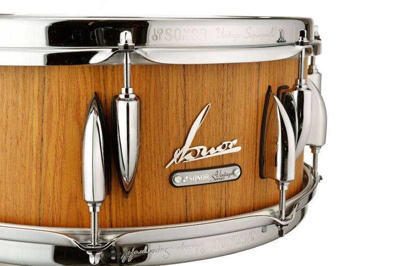 Sonor VT 14'' x 5,75'' SDW Snare Drum Teak Semi Gloss Vintage Serie Kesselmaterial: Buche Kesseldurchmesser: 14' Kesseltiefe: 5,75' Kesseloberfläche: foliert Spannreifen: Stahl 2,3 mm Stimmschrauben: 8 Stk pro Spannreifen Kesselhardware: Chrom Finish: Teak Semi gloss