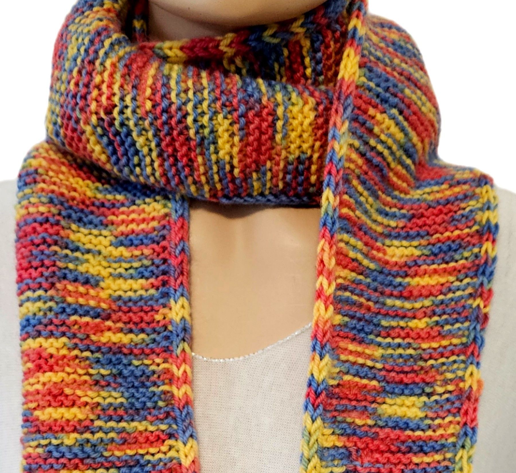 Sophie Scarf handgestrickter Schal handmade with love Farbverlauf Blau Gelb Lachs