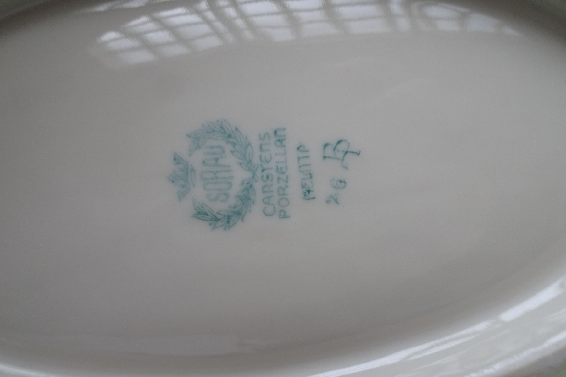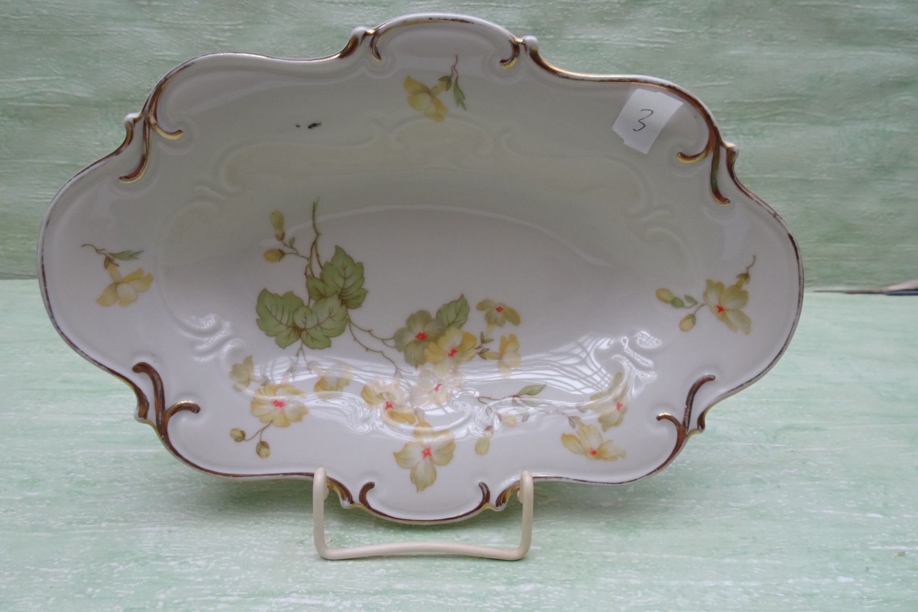 1: Schale ca 33x29cmm, 2: Schale ca 33x29cm, 3: Schale ca 25x17x4,5cm, 4: Schale mit Fuß ca 28,5x5,5cm, 5: Deckeldose ca 8,5x10,5cm