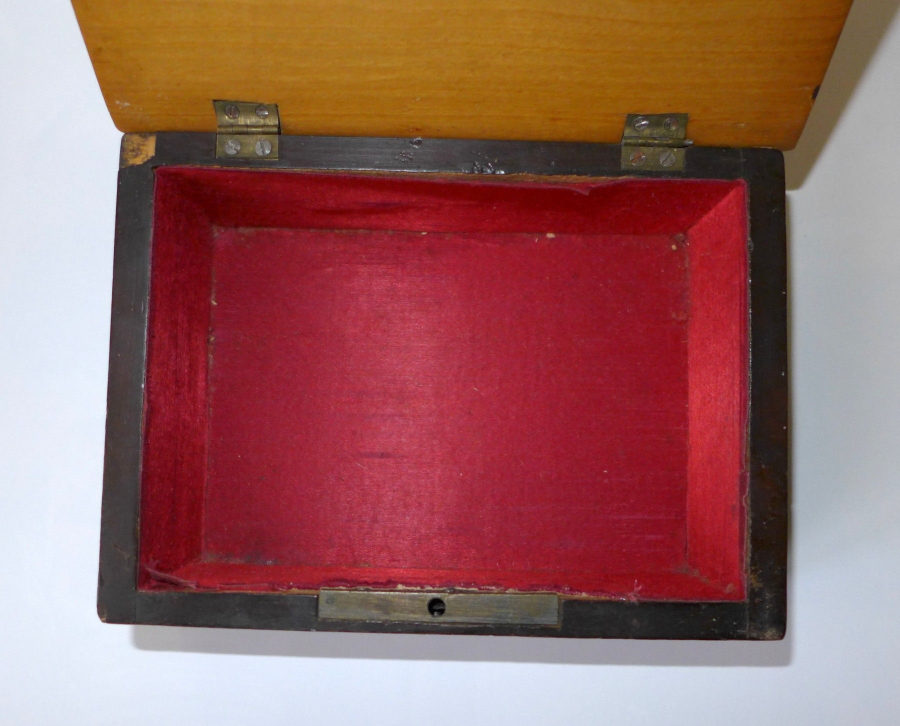 gebrauchter benutzter Zustand siehe Fotos , Beschädigungen siehe Fotos , Deckel etwas verzogen , kein Schlüssel vorhanden , Breite ca. 16 cm , Tiefe ca. 11,5 cm , Höhe ca. 6 cm , Lichtspiegelungen , Schattenbildung , Farbabweichungen können beim fotografieren auftreten , H 233 original keine Kopie D