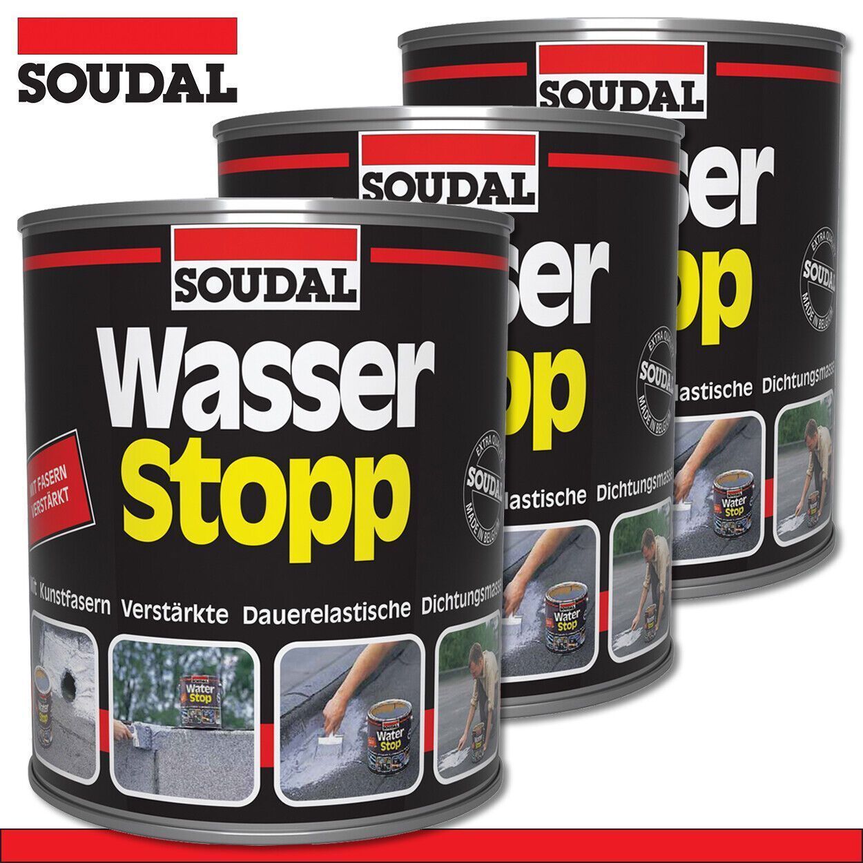 Soudal Soudal 3 x 750 g Wasserstopp Dichtungsmasse abdichten Dachschutz faserverstärkt