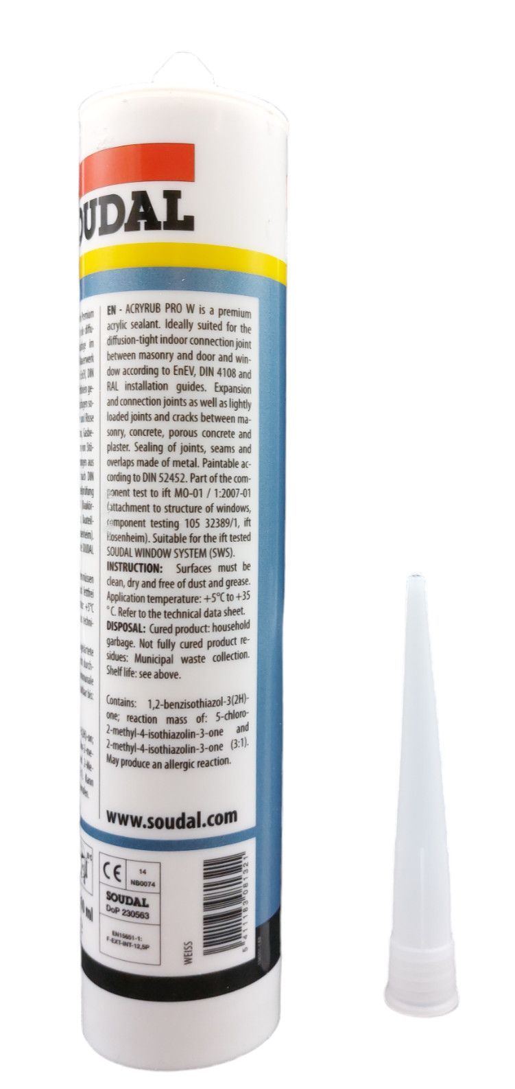 Soudal Soudal Acryrub Pro W, Premium Anschlussfugenacryl, 310 ml, Acryldichtstoff, Weiß