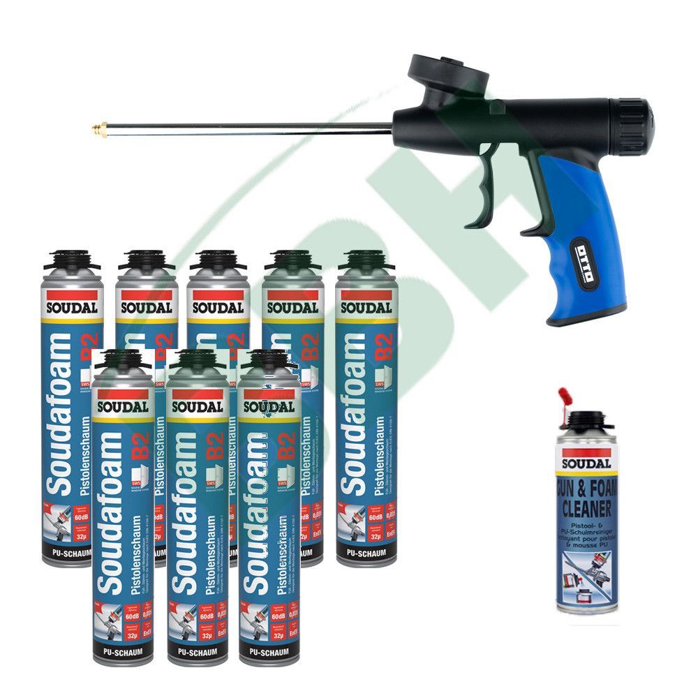 SOUDAL Spar-Set: Schaumpistole + 8 x 750 ml Pistolenschaum Soudafoam Gun + Reiniger