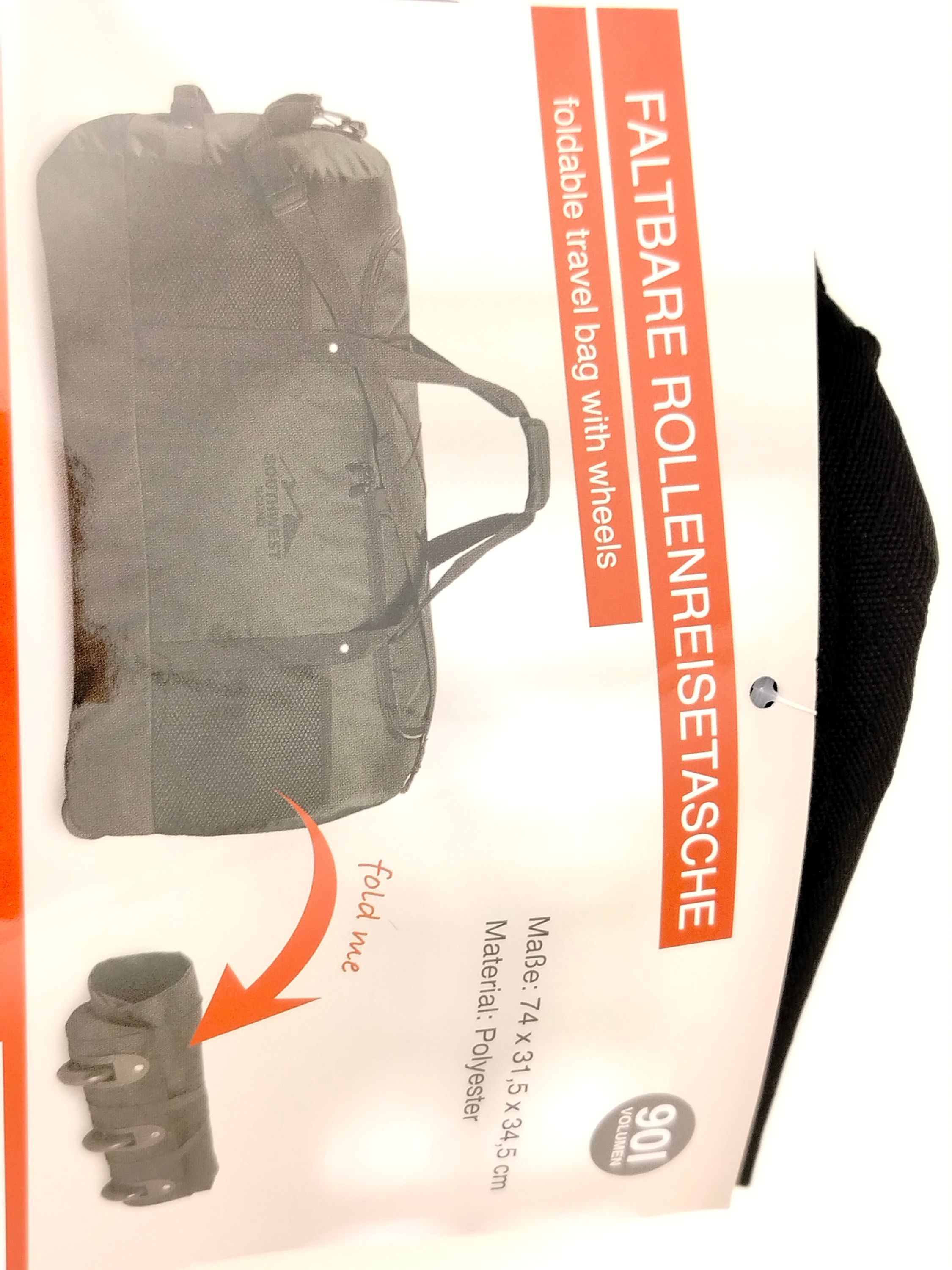 • Rollenreisetasche Schwarz 50L mit Stabiles Gestänge & Leichtlaufenden Rollen