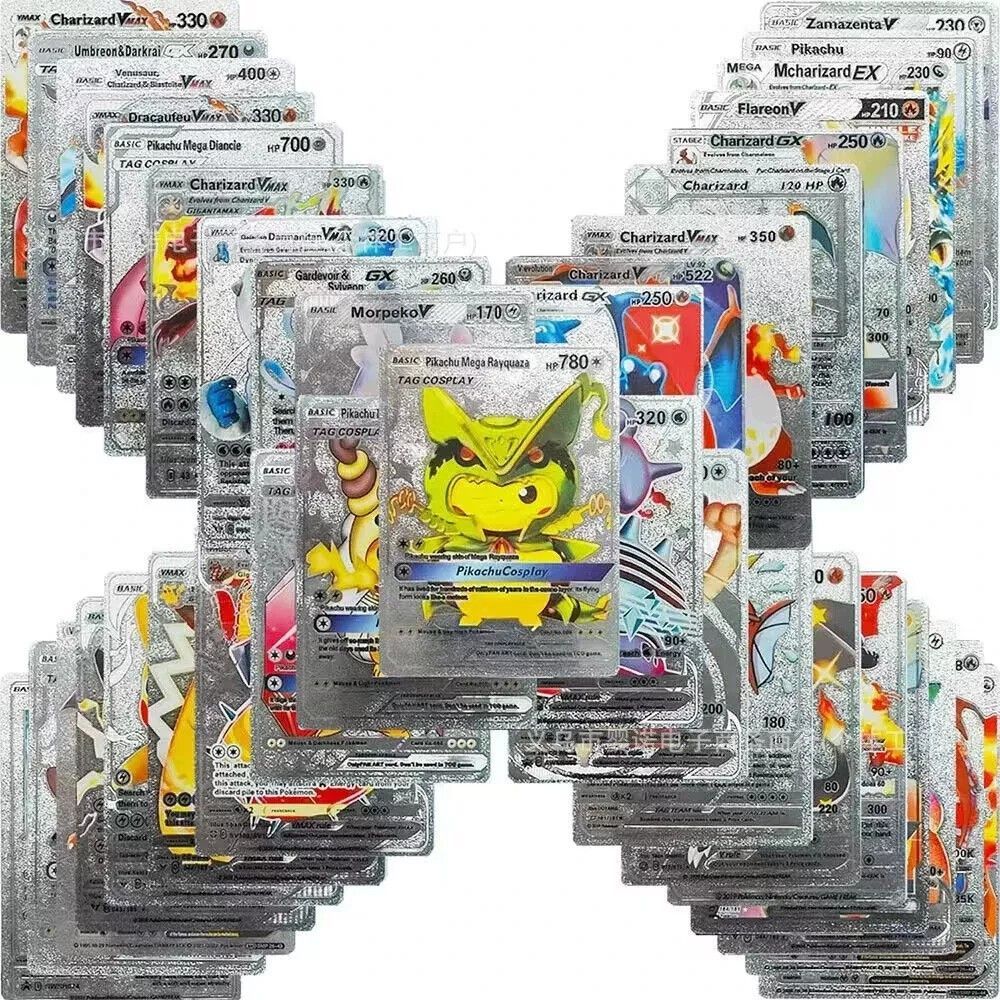Souvenier Silber Metall Karten Optik Pokemon mit Zufallsgenerator (PM181025)