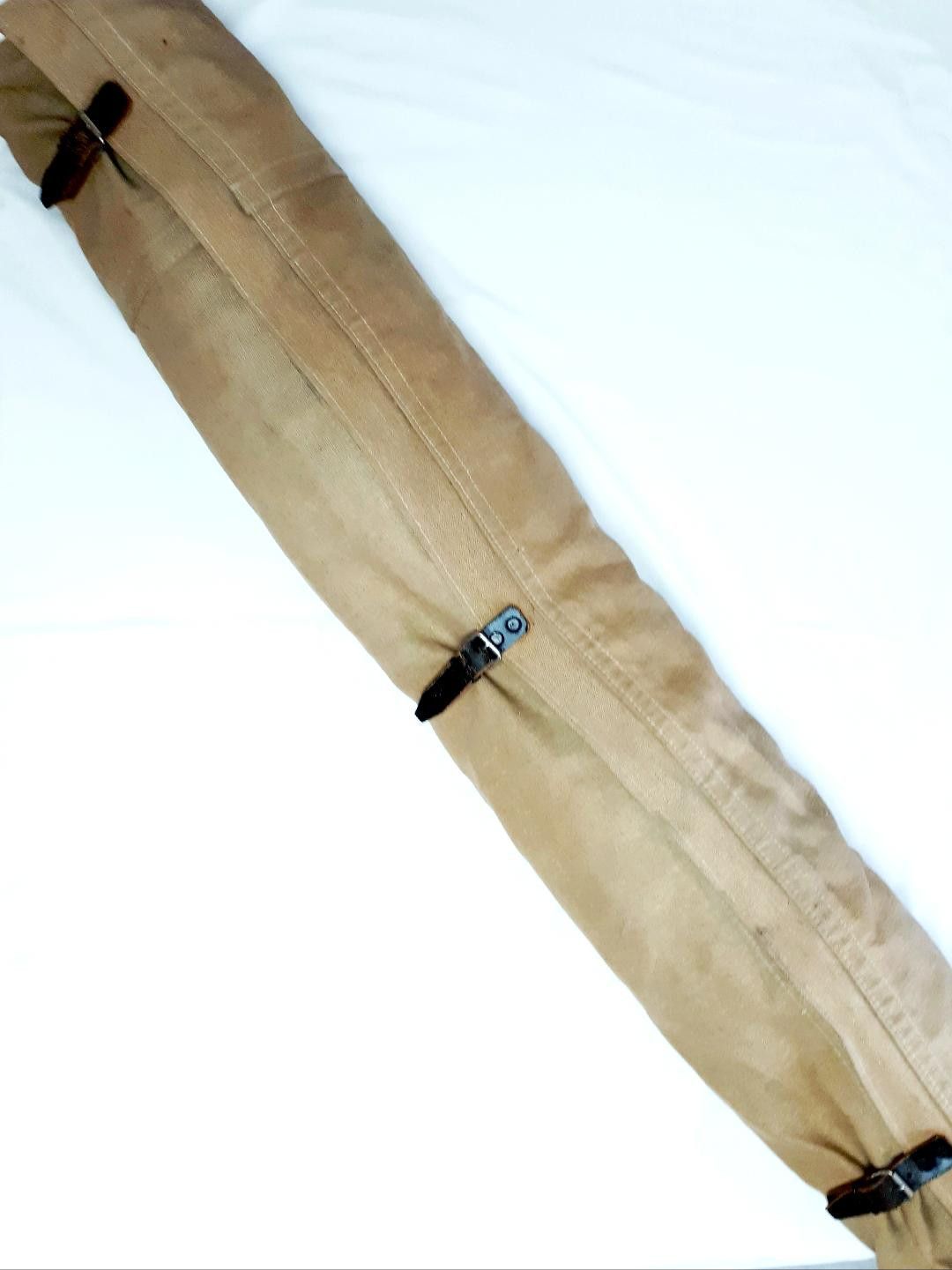 Sowjetische Waffentasche K 41 * vermutlich für Raketenwerfer * mit 3 Verschlüssen und einem Tragegriff * Länge: ca. 115 cm * Durchmesser: ca. 16 cm Zustand: gut - gebraucht mit einigen Gebrauchsspuren