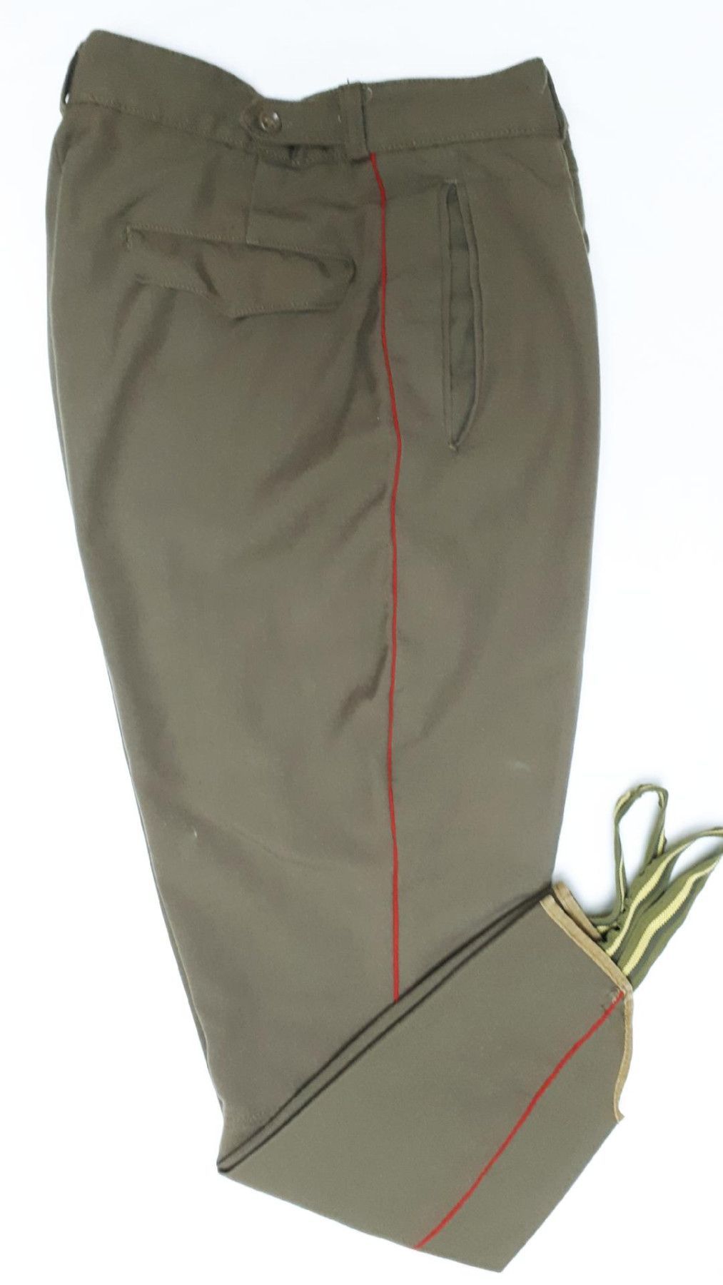 Sowjetunion UDSSR Stiefelhose Gr. 46-3 K 98 * Größe: 46-3 * Farbe: olivbraun mit roter Biese Zustand: gut - gebraucht mit kleinen Gebrauchsspuren (kleine Beschädigung ist vorhanden, siehe Bild) Abbildung ist beispielhaft, Abweichungen kommen vor!