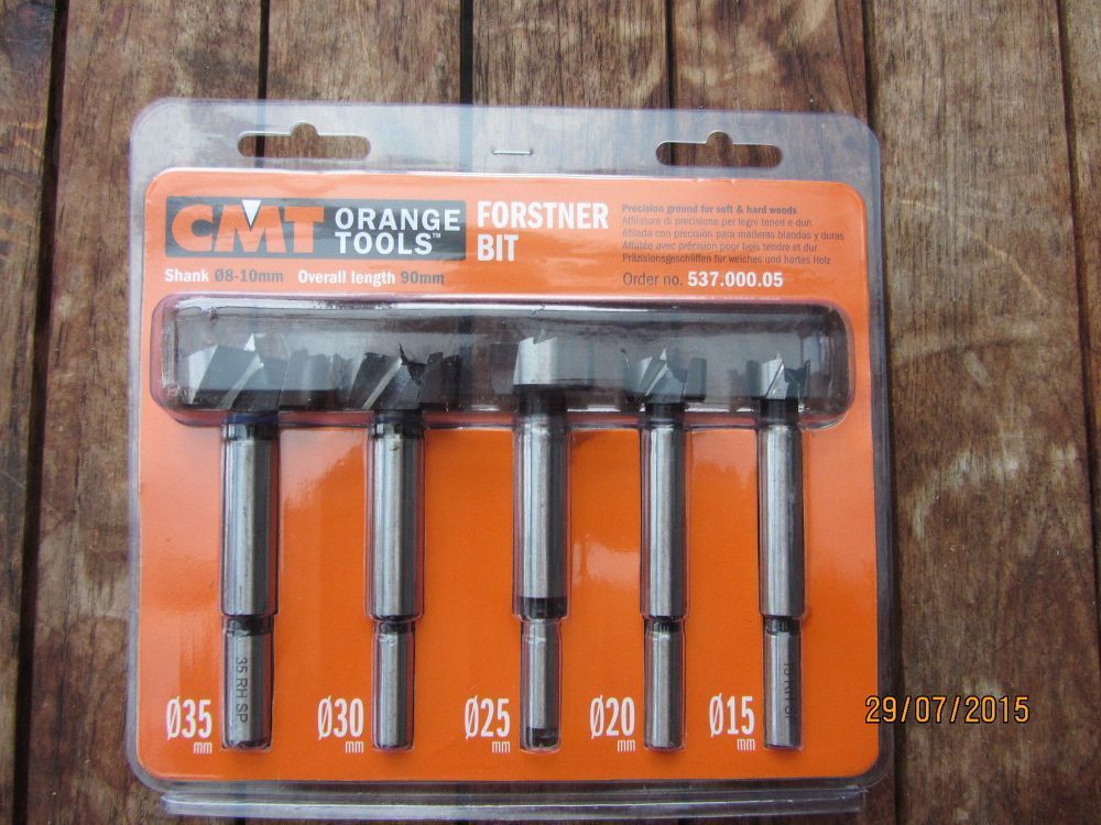 Forstnerbohrer-Satz aus dem Hause CMT sehr gute Industriequalität aus Werkzeugstahl SP Ausführung: Mit Zentrierspitze Durchmesser: 15, 20 , 25, 30, 35 mm Gesamtlänge: 90 mm Länge der Aufnahme: 30 mm Schaft=8-10mm Art. Nr. 537.000.05 Anwendung: Zum Bohren von Sacklöchern in Weichholz