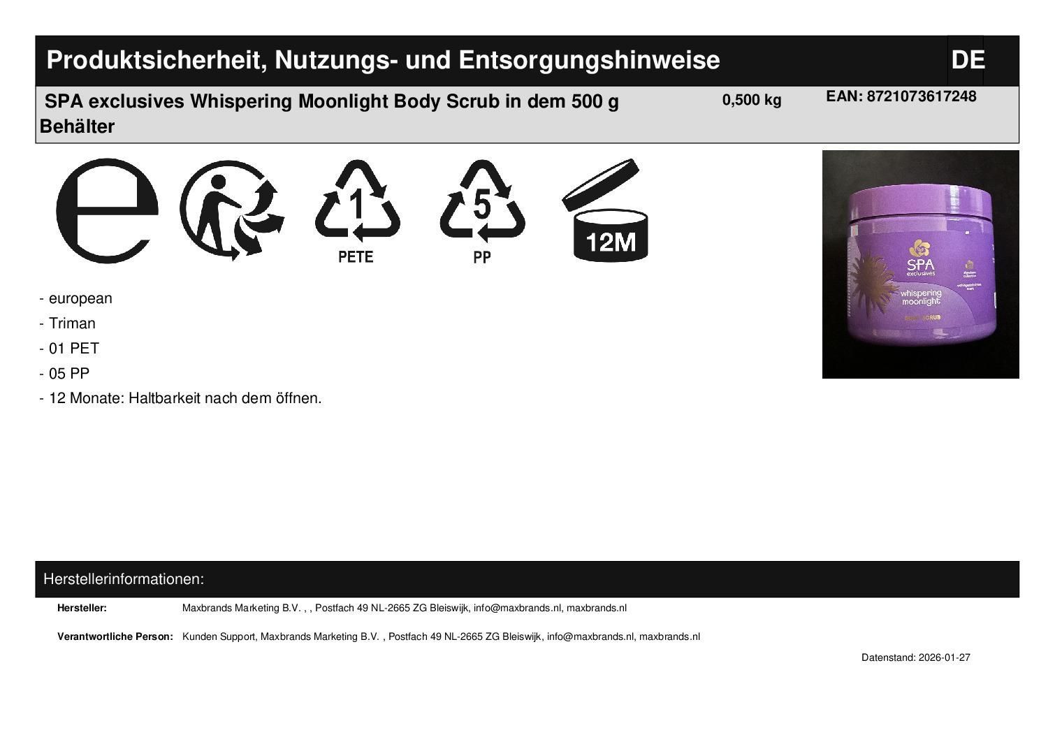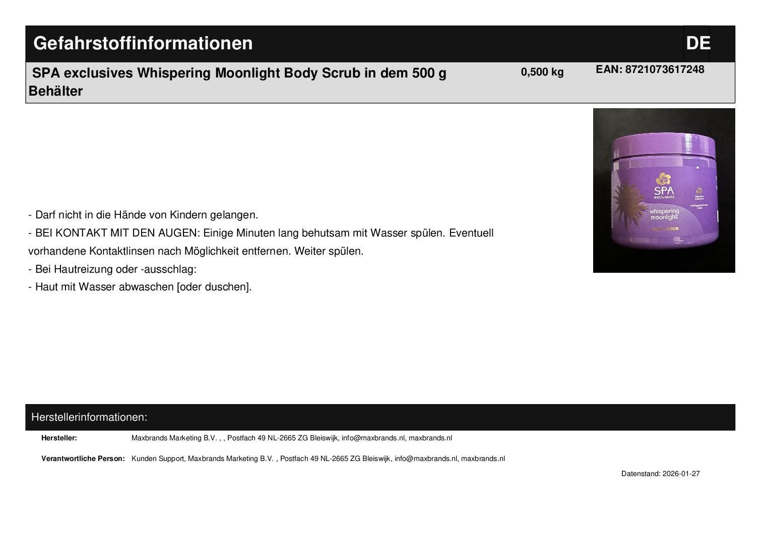 SPA exclusives Whispering Moonlight Body Scrub in dem 500 g Behälter