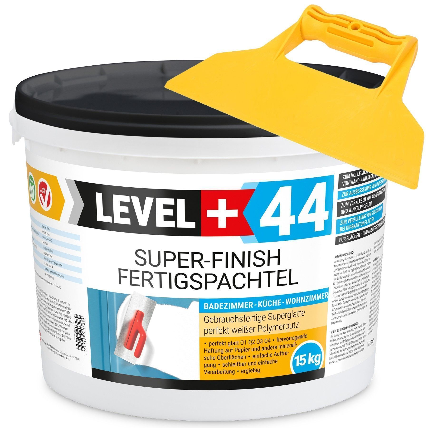 Spachtel Masse 15kg Super Finish Glätt Q4 Küche Bad mit Kunststoffspachtel L+44