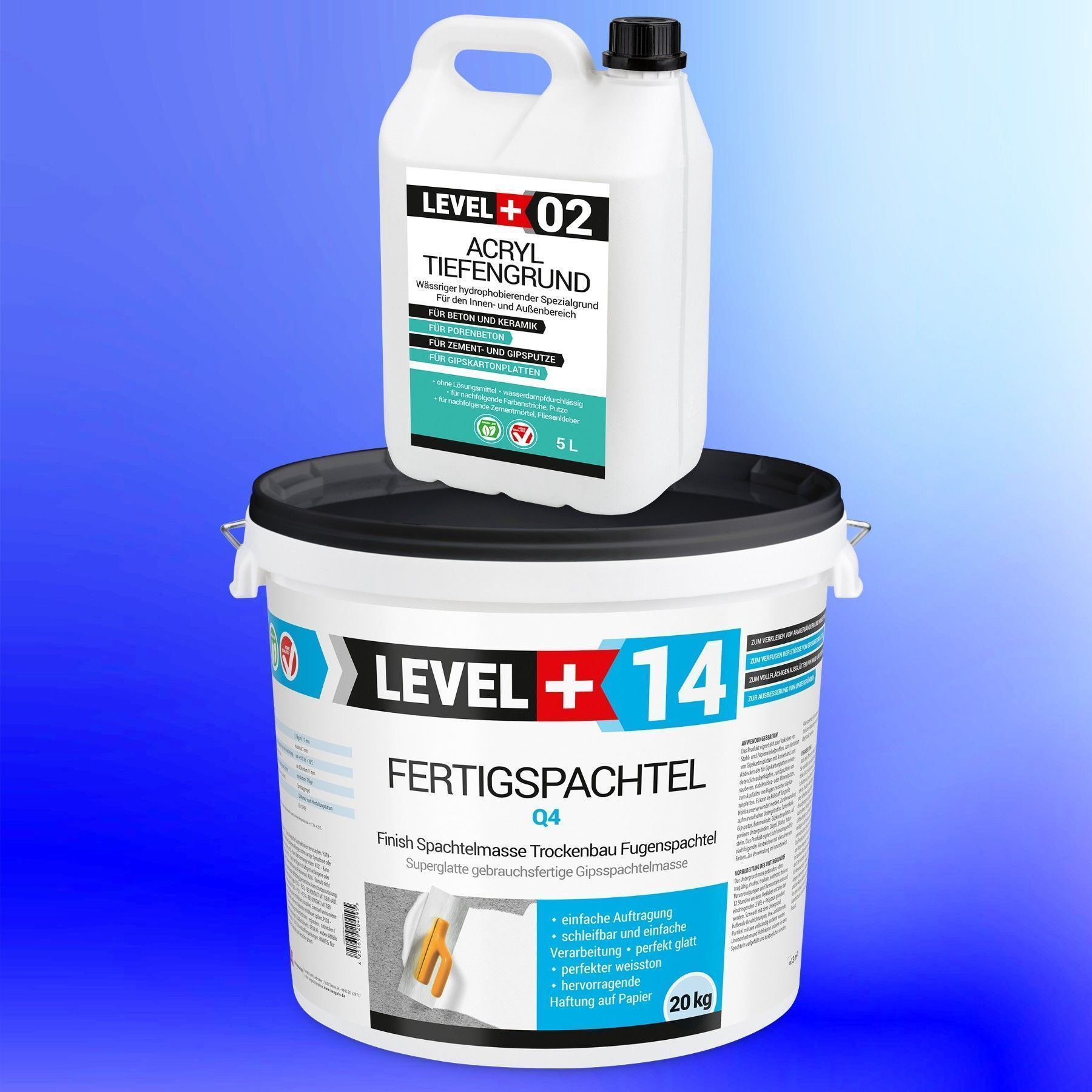 Spachtel masse 20kg + Tiefengrund 5L Fertigspachtel Finish Q4 SET600