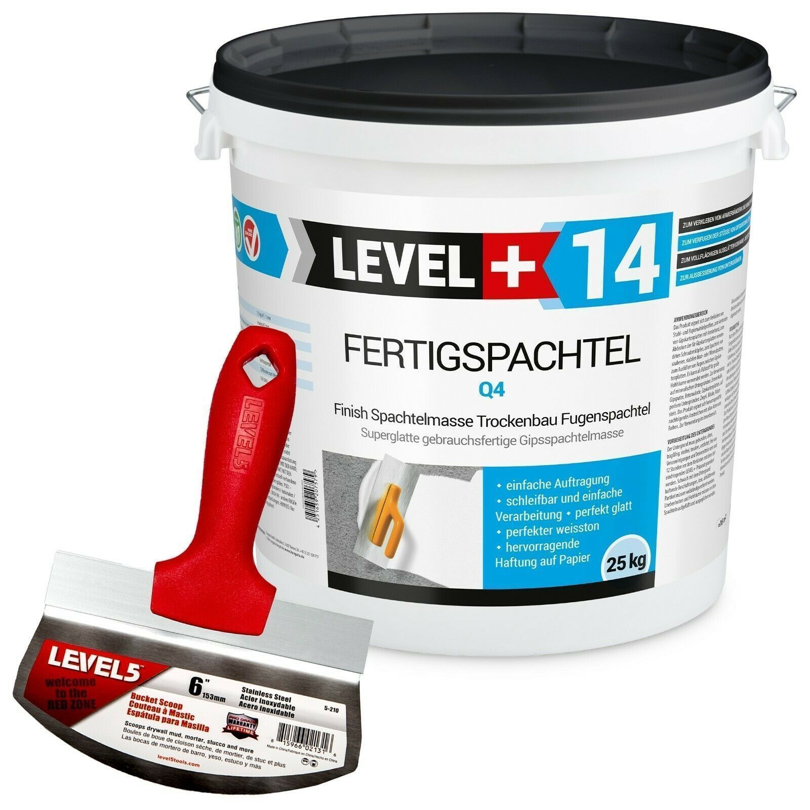 Spachtel Masse 25kg Finish Fertigspachtel | LEVEL+ Eimerschaber Reiniger L+14|5-210