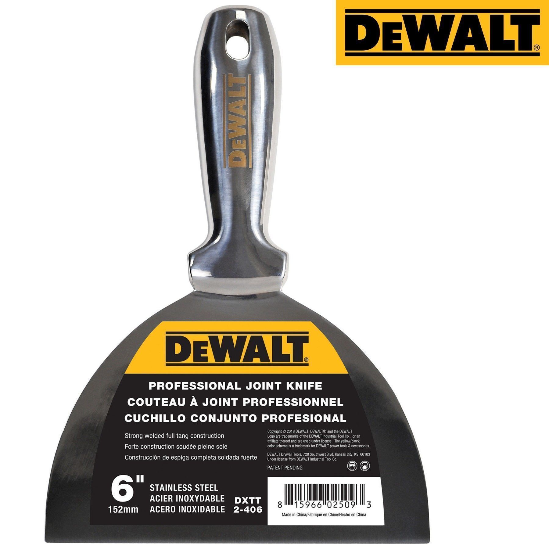 DEWALT Spachtel PROFI ganz aus Edelstahl DEWALT rostfrei 152mm Malerspachtel 2-406