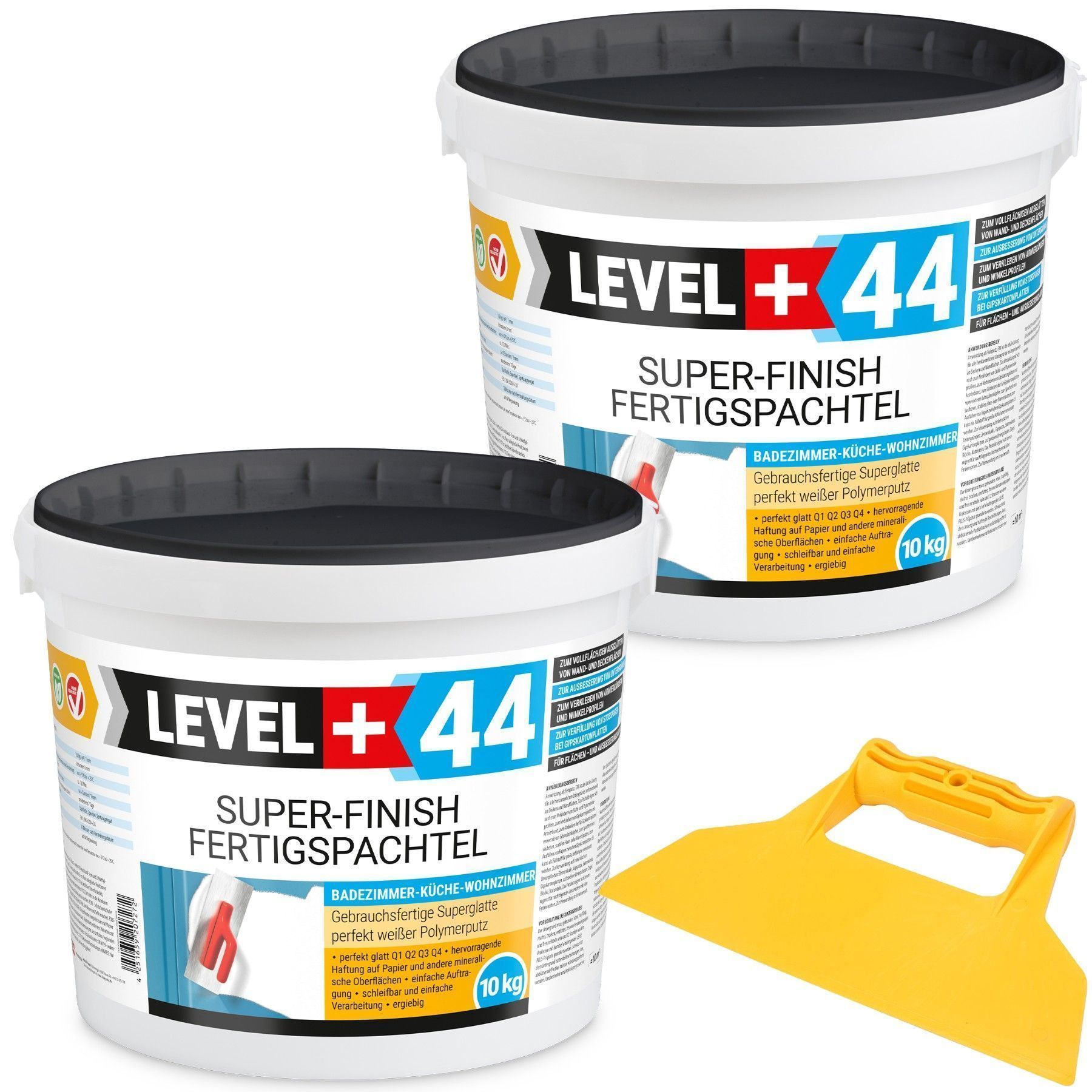 Spachtelmasse Fertig Super Finish 10kg + 10kg Glätt Q4 mit Kunststoffspachtel L+44