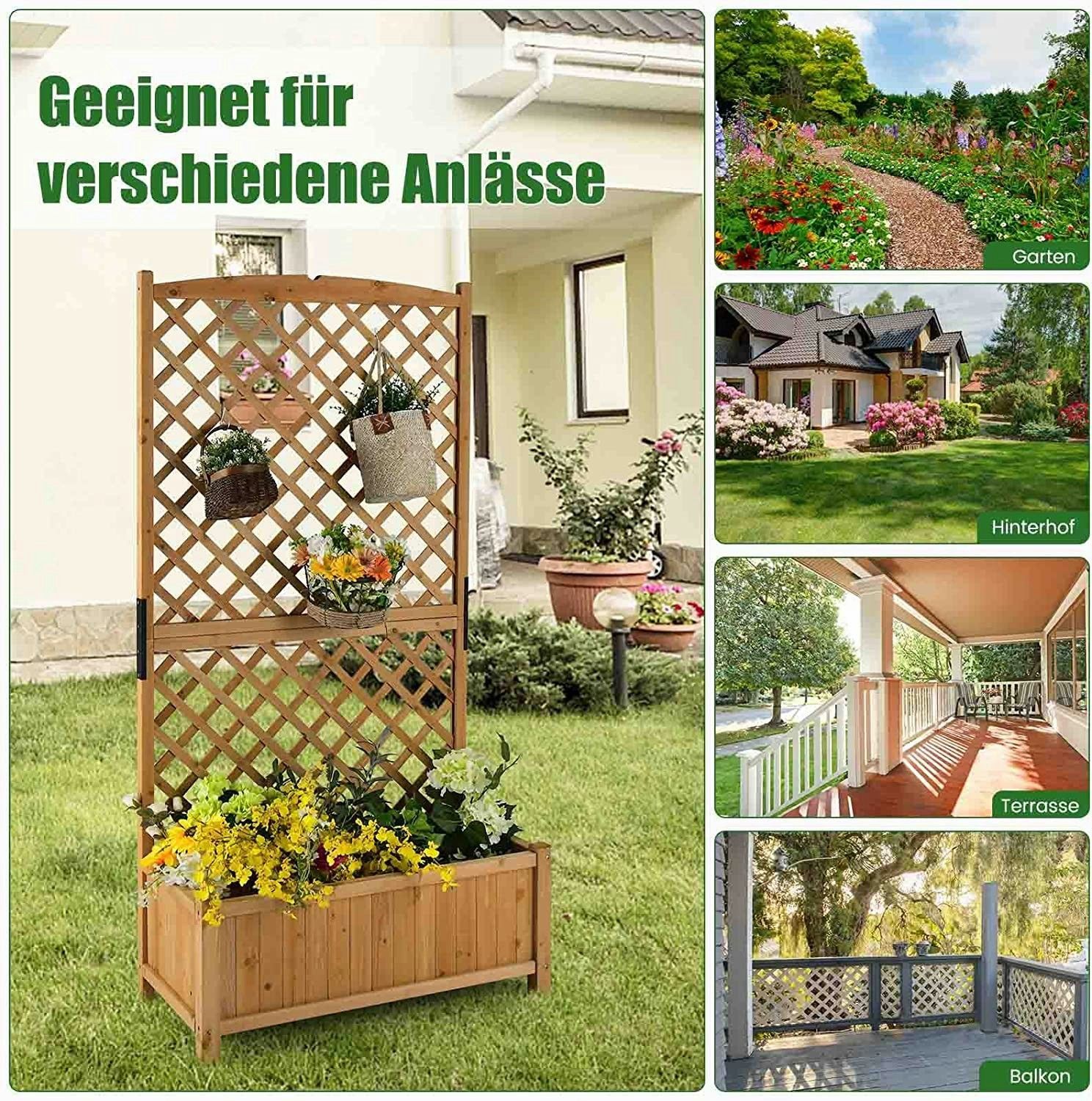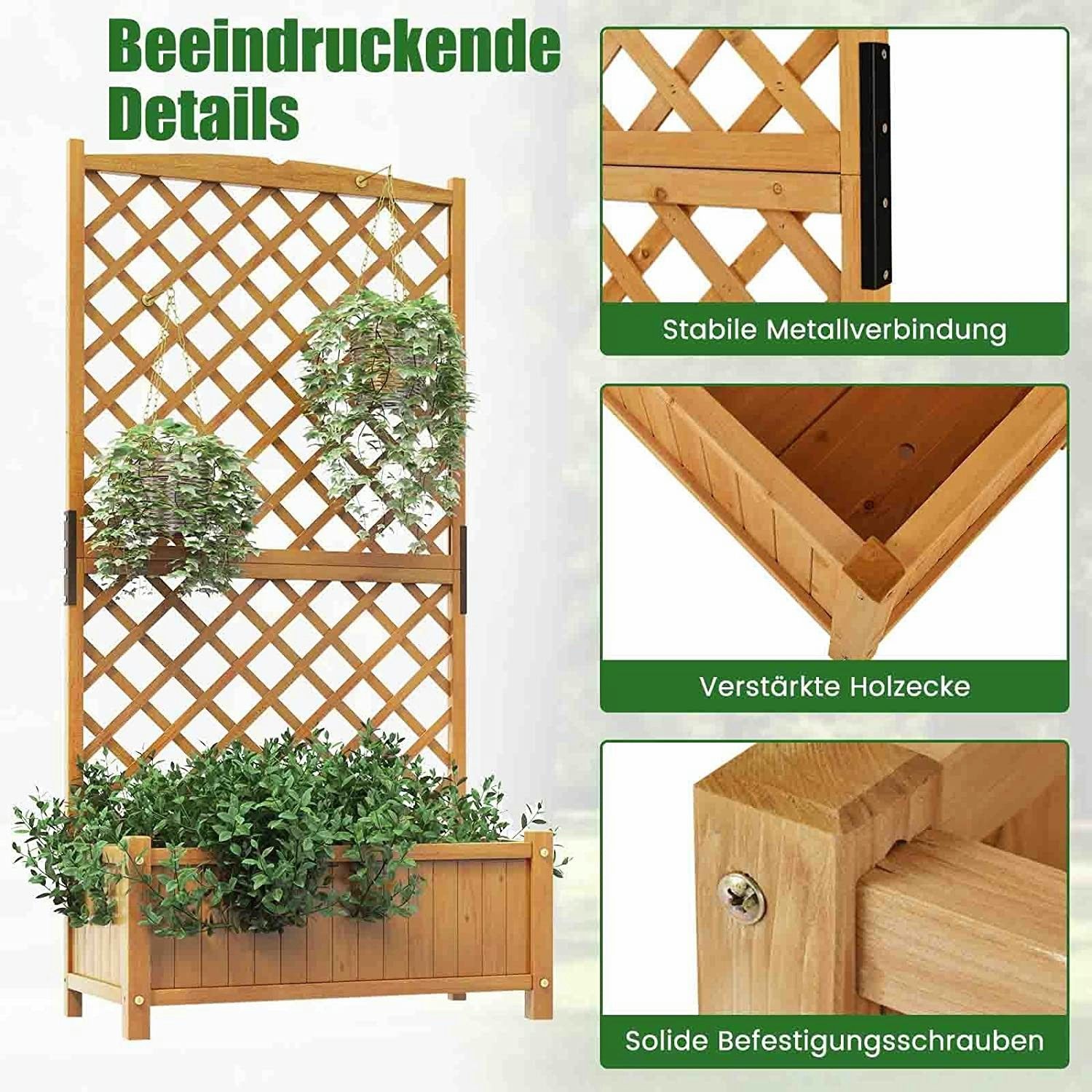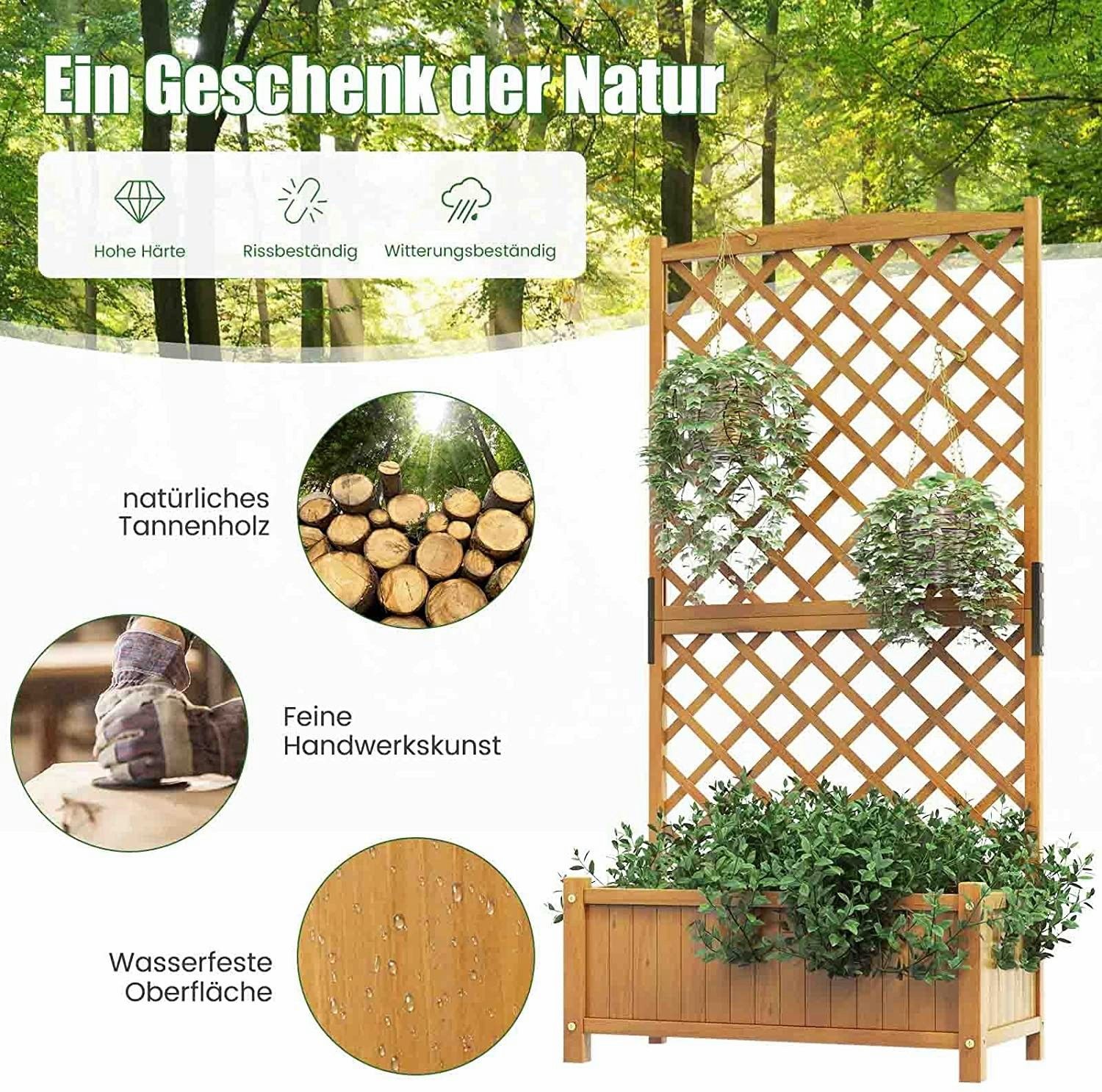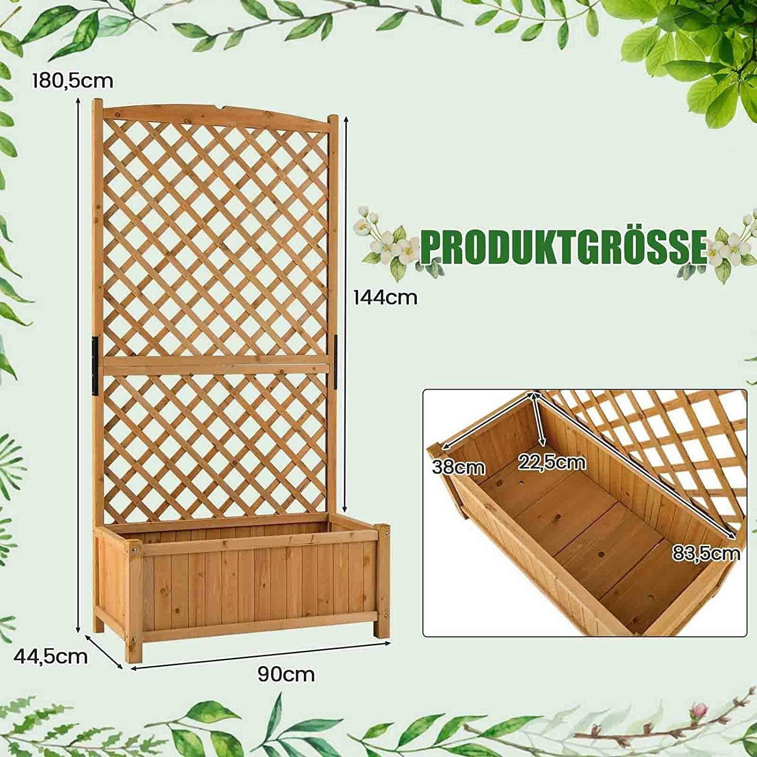 Spalier mit Blumenkasten aus Tannenholz, Pflanzkasten für Kletterpflanzen, Hochbeet