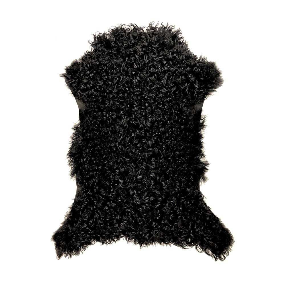 Spanisches lockiges Lammfell Ein flauscig, weiches, lockiges Lammfell von spanischen Schafen. Auf der einen Seite ist das flauschige Fell und auf der anderen Seite das rutschfeste Leder. Farbe: schwarz Größe; 60 x 70