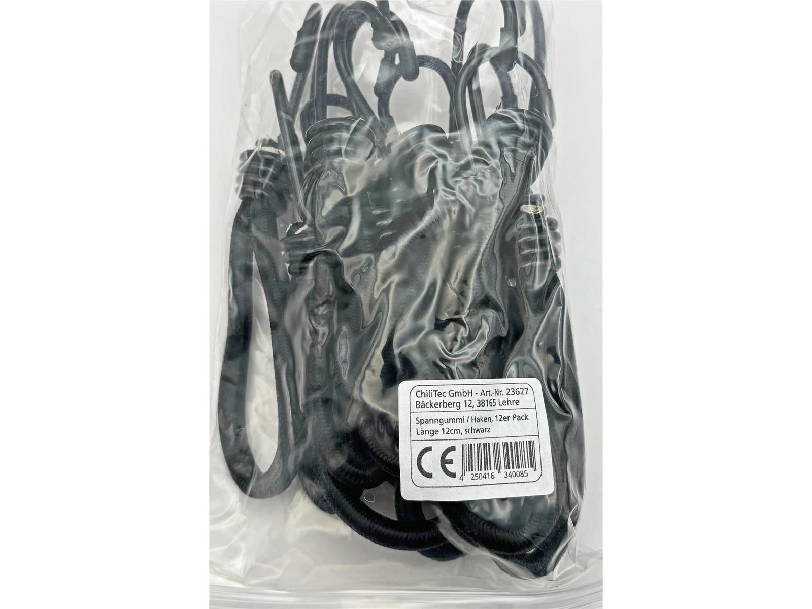ChiliTec Spanngummi mit Haken, 12er Pack Extra stark, Länge 12cm, schwarz