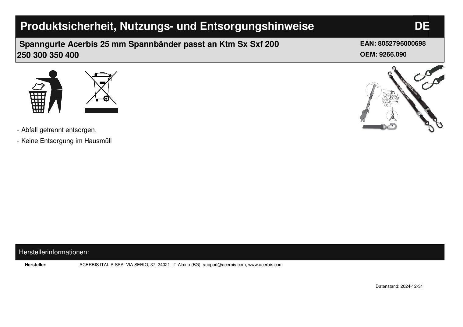 Acerbis Spanngurte Acerbis 25 mm Spannbänder passt an Ktm Sx Sxf 200 250 300 350 400