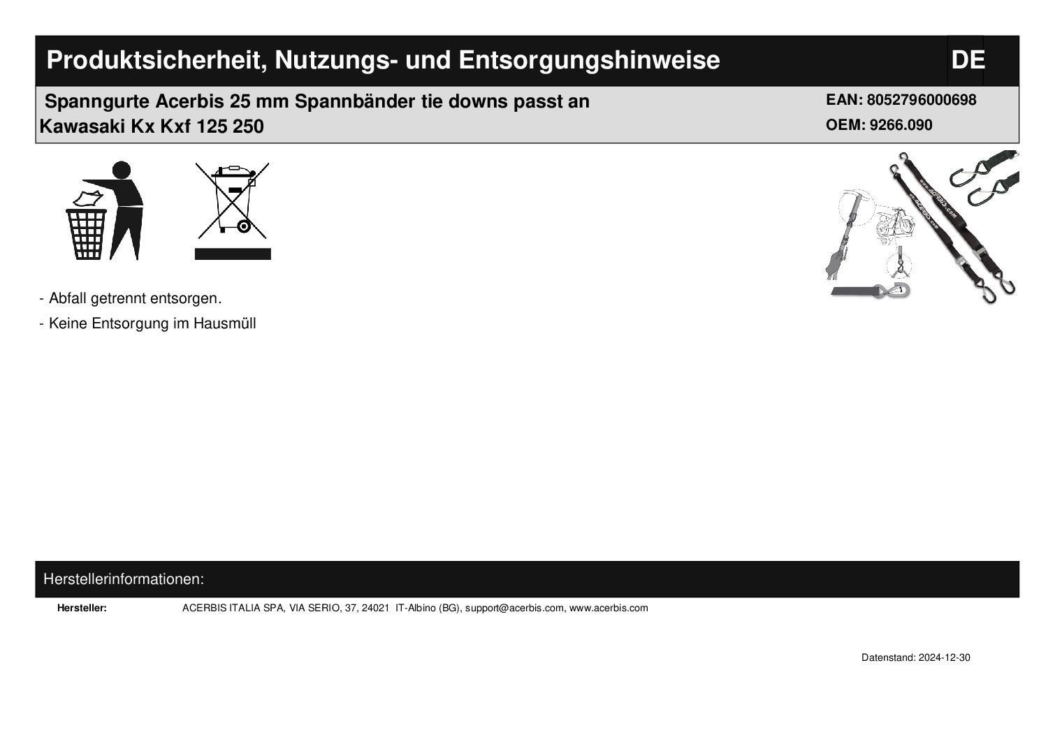 Acerbis Spanngurte Acerbis 25 mm Spannbänder tie downs passt an Kawasaki Kx Kxf 125 250