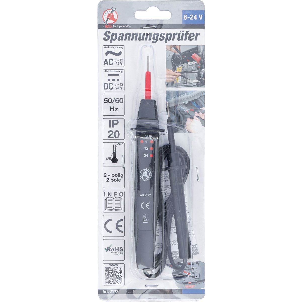 BGS Spannungstester Dioden Prüflampe Messbereich 6-24 V Spannungsprüfer Stromprüfer