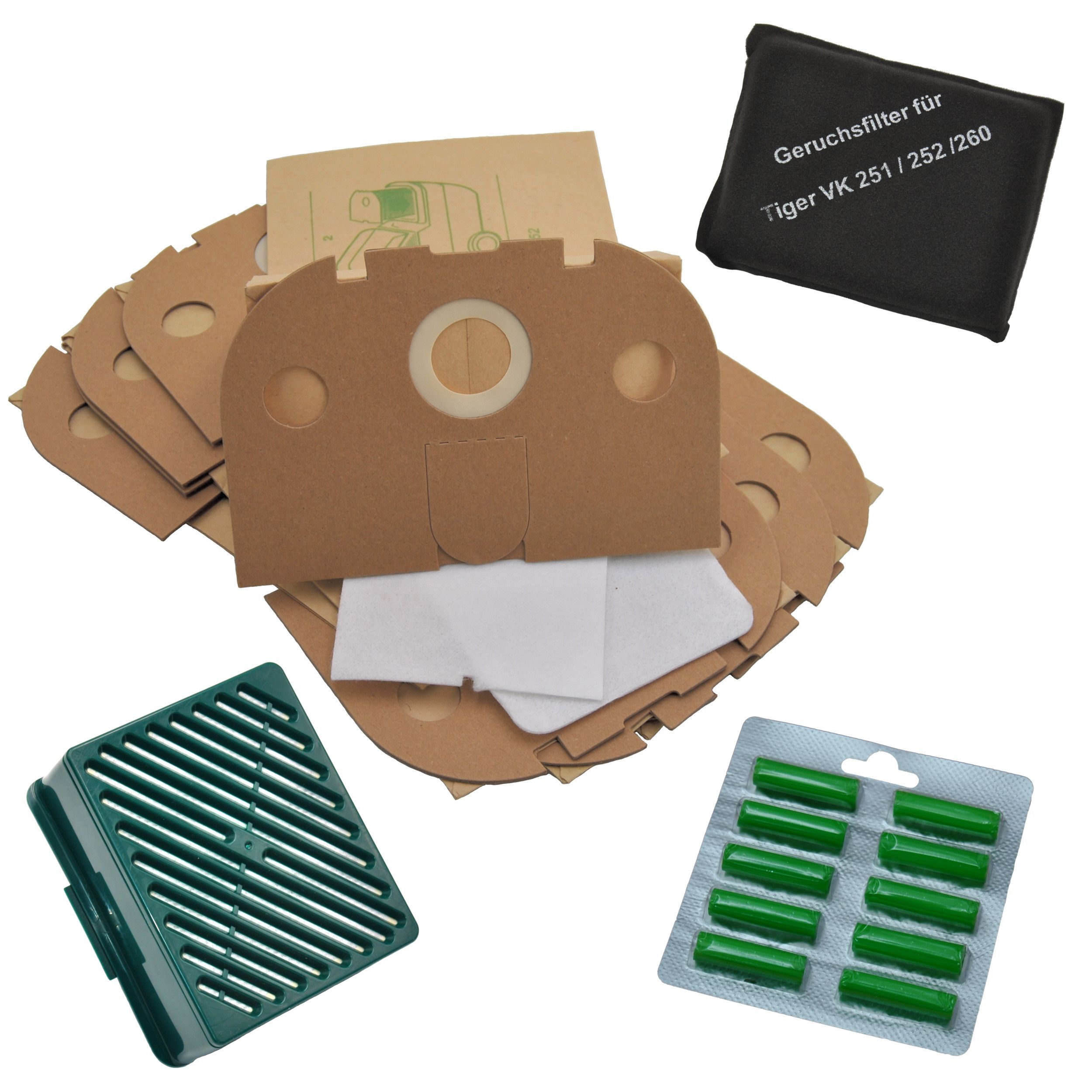 SPAR SET geeignet für Vorwerk Tiger 251 252 10 Beutel + Aktivfiltersystem + 10 Duft