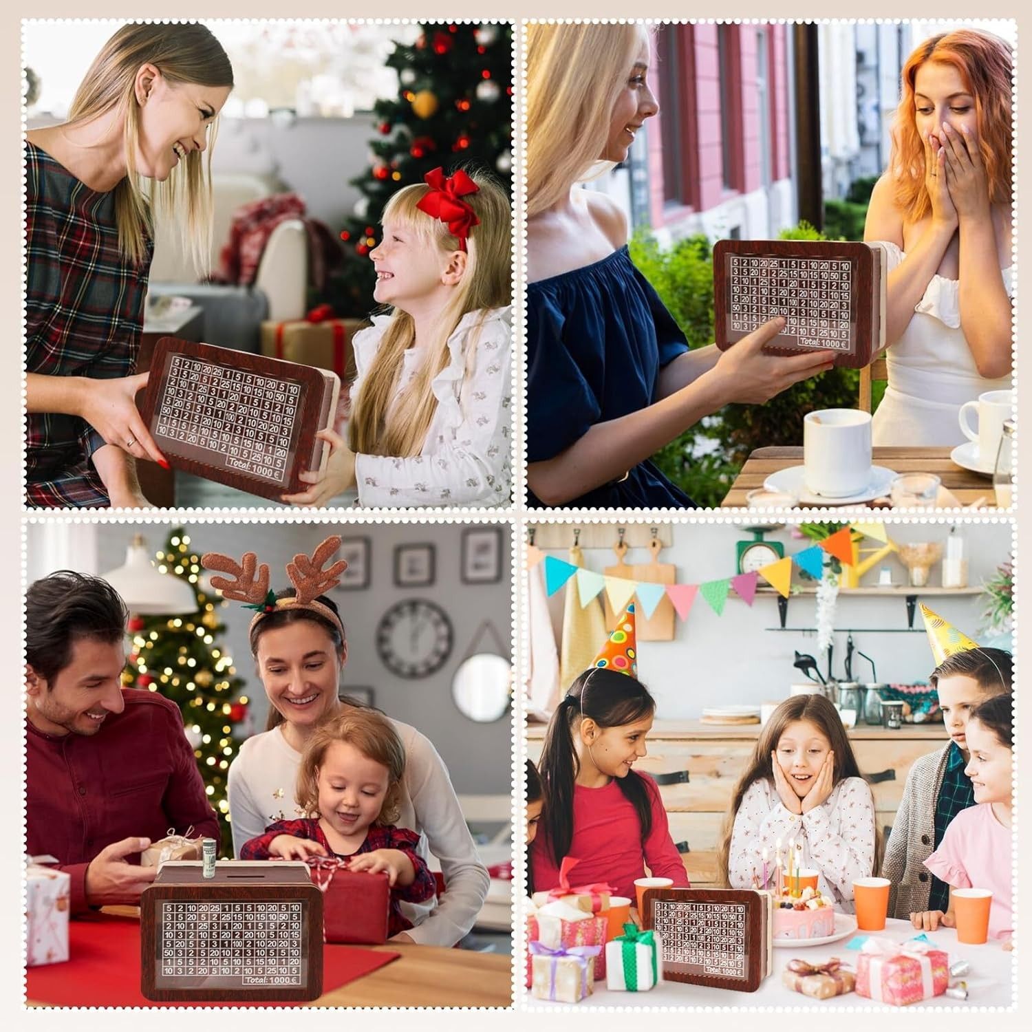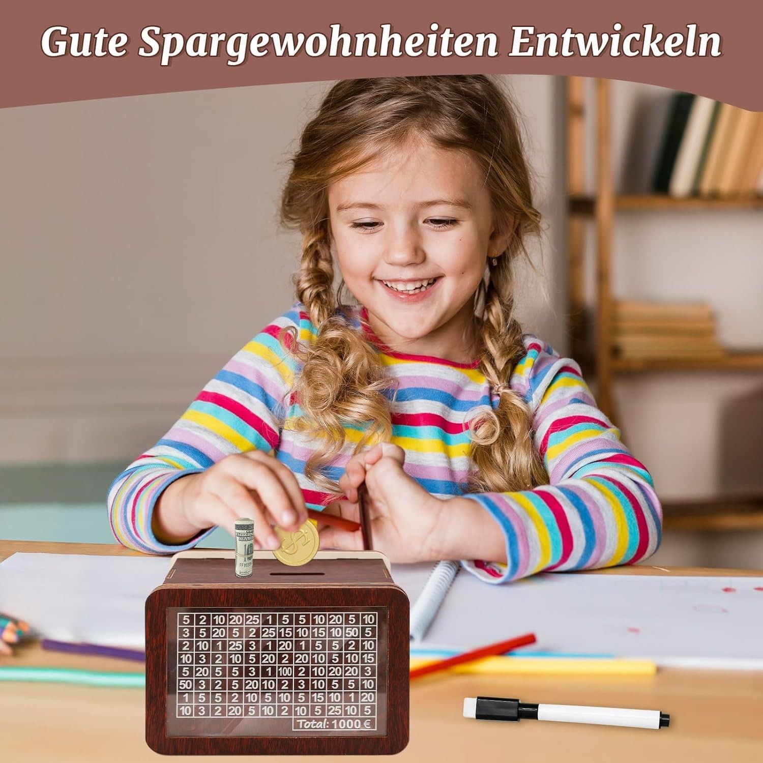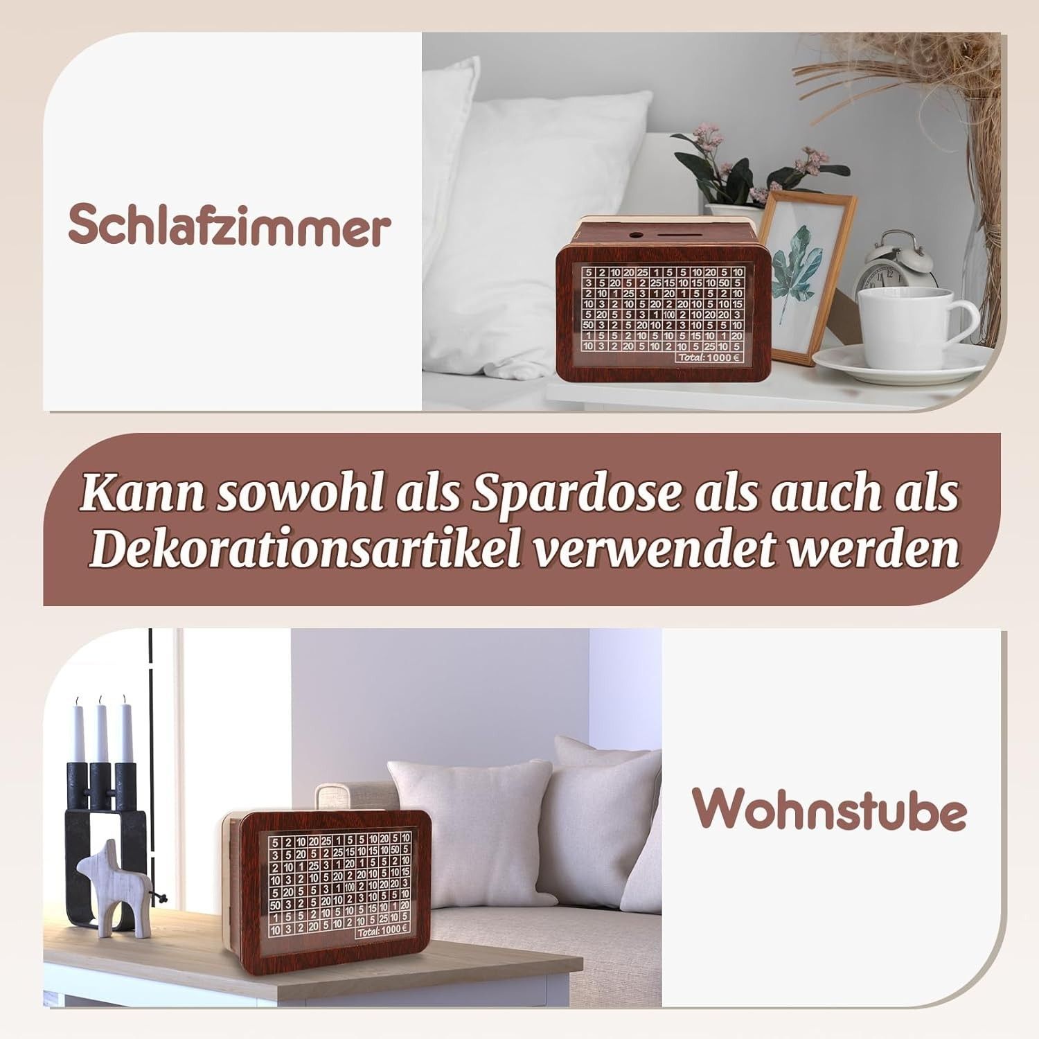 SPARDOSE MIT ZÄHLER: Die Spardose hat spezielle Löcher für Münzen und Scheine. Markieren Sie Beträge auf der Acryltafel und verfolgen Sie Ihr Sparziel – perfekt für Kinder und Erwachsene. HOCHWERTIGES MATERIAL: Aus robustem MDF-Holz gefertigt, langlebig, ungiftig und geschmacksneutral. Die Mar