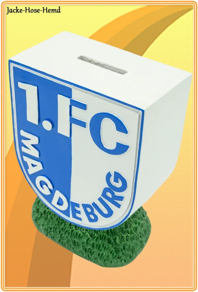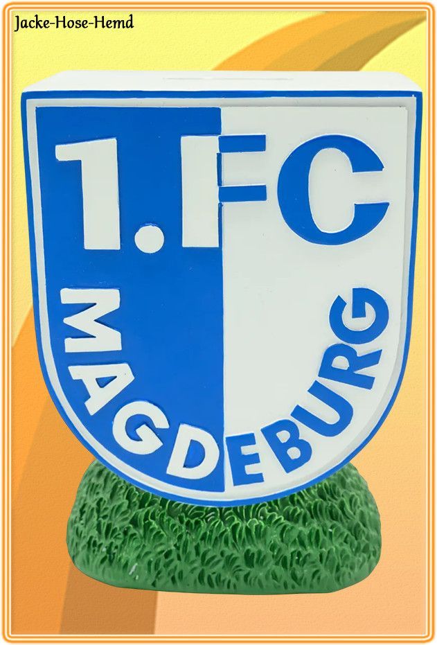 Spardose 1. FC Magdeburg Wappen Blau Weiß Sparbüchse Logo Gr: 10,2x6,6x14,6cm NEU