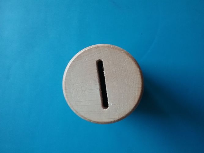 Sparbox aus Holz mit Zahlen zum Ankreuzen mit Sparziel 1000€, 2000 € und 3000 €