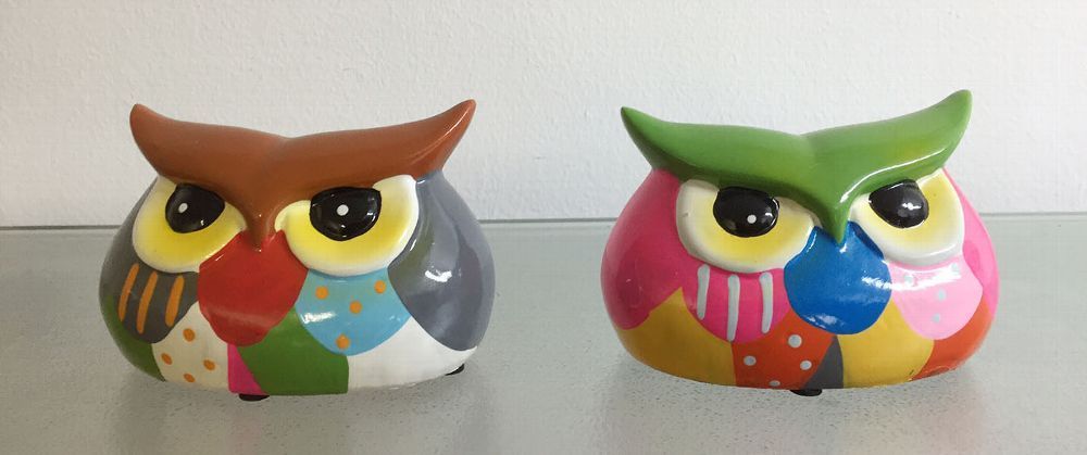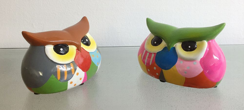 Spardose EULE BUNT 11cm breit Keramik Dekoration Deko UHU Sparschwein