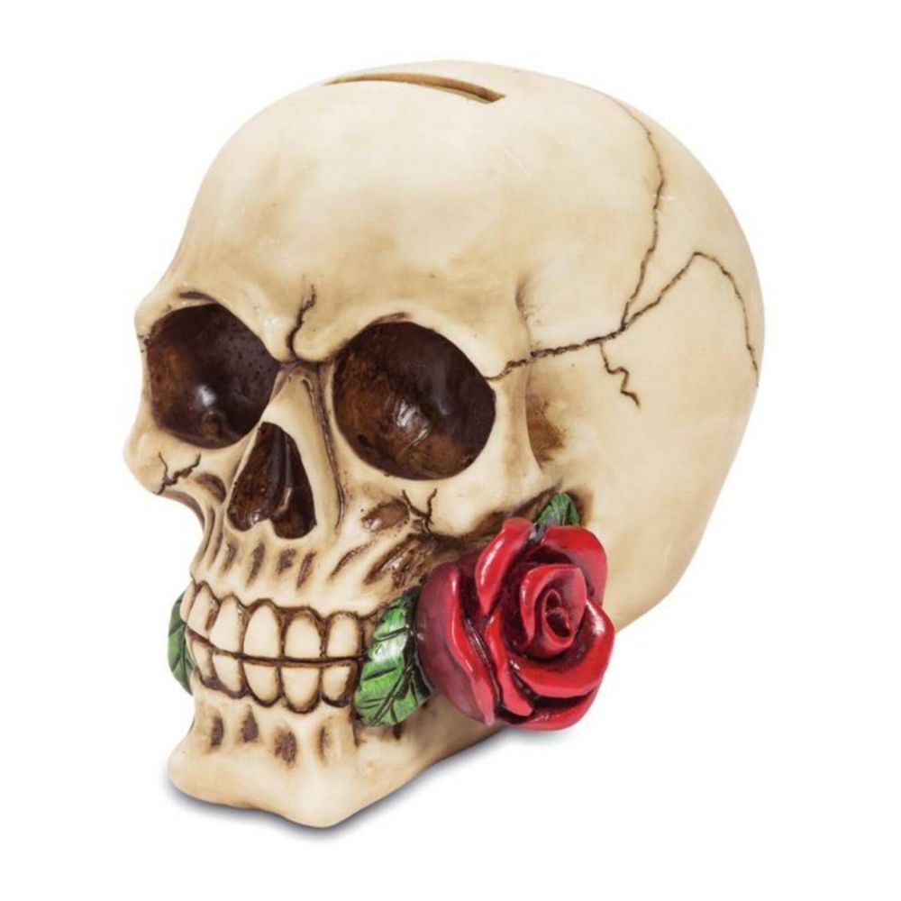 Spardose Totenkopf hat eine Rose im Mund 12cm (Gr. 12x15x10cm)