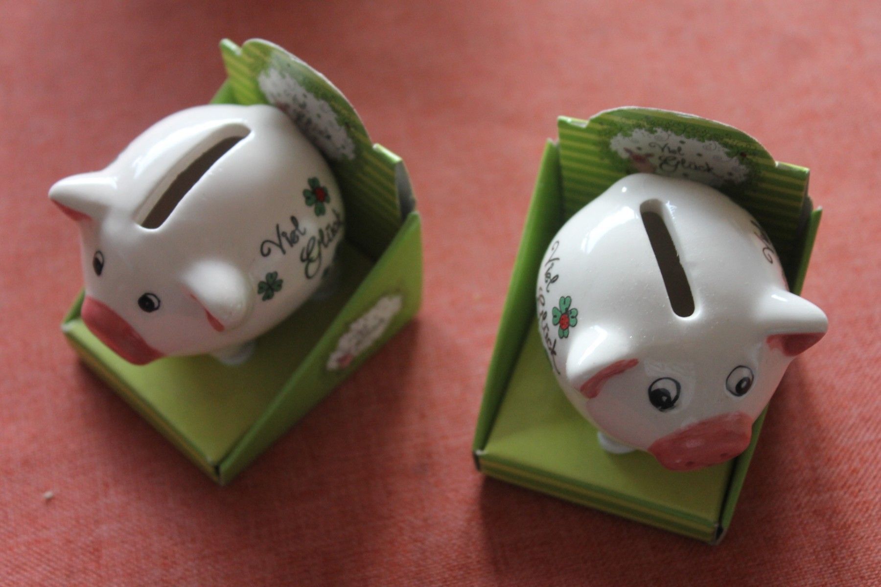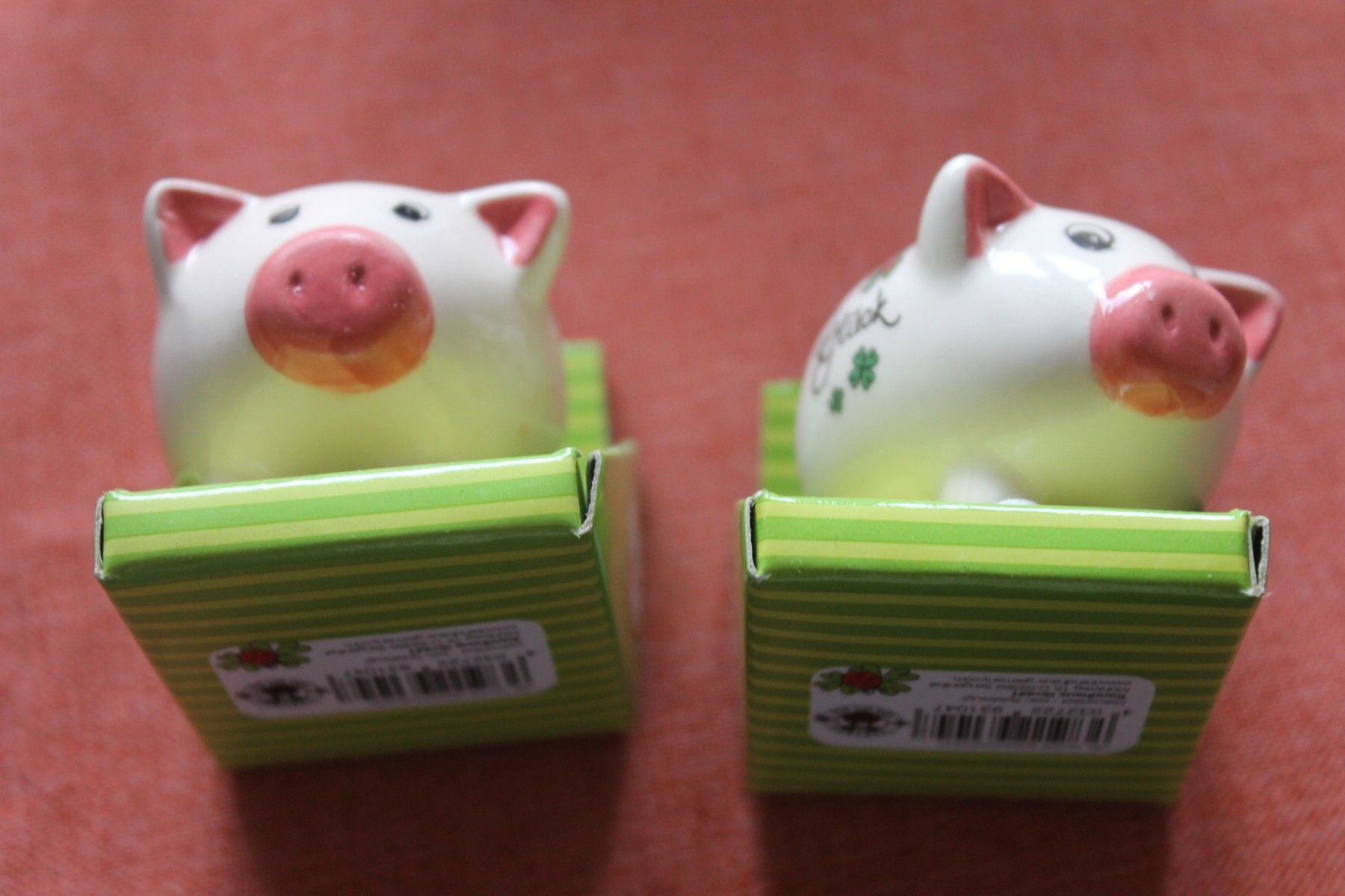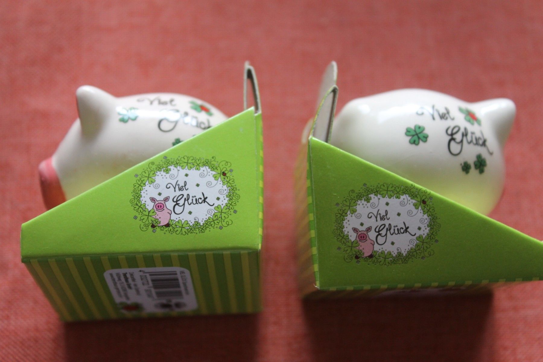 Sparschwein, Keramik, Minischwein "Viel Glück"; 2 Schweine