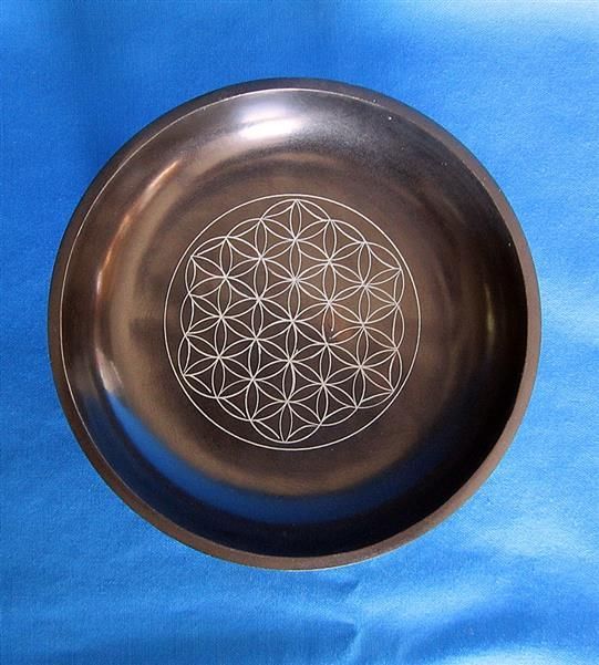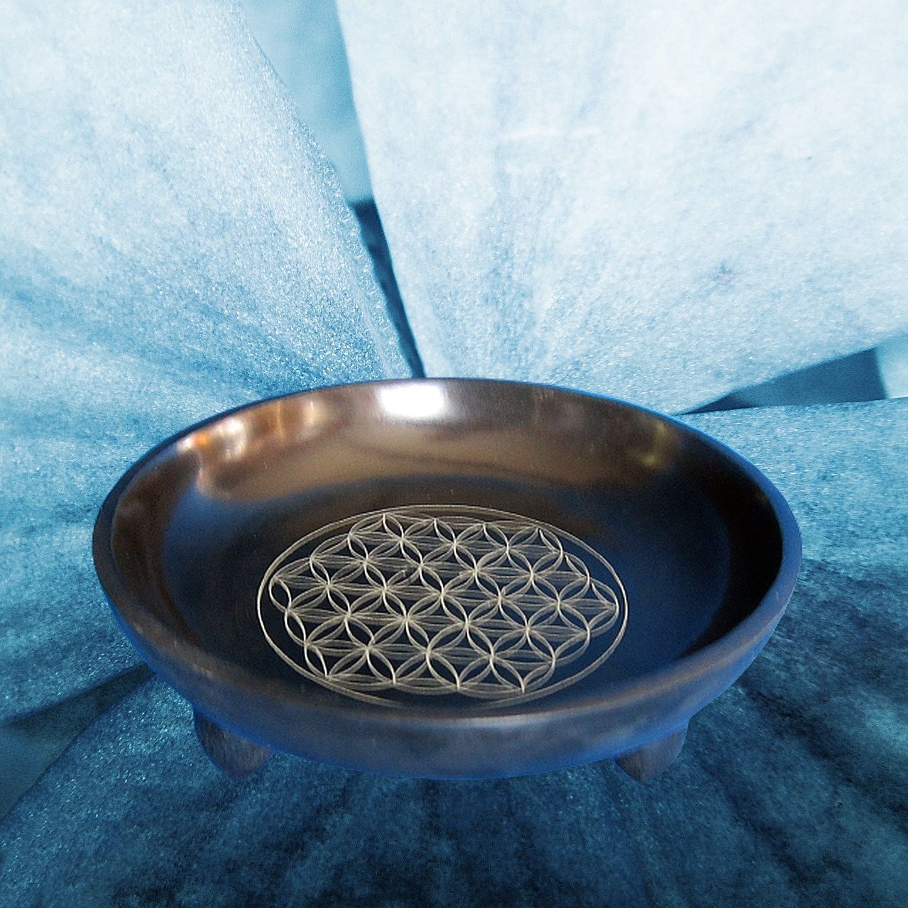 Specksteinschale BLUME DES LEBENS schwarz H: 5 cm D: 12,5 cm Räuchergefäß