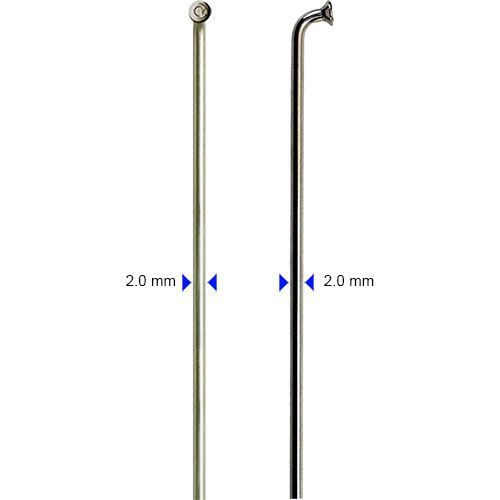 Speiche silber, 284mm, Ø = 2,0 Edelstahl, cnSpoke, 100 Stück, ohne Nippel, Messing