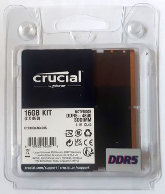 • 16GB Kit DDR5-4800 SODIMM RAM Arbeitsspeicher 2x 8GB Crucial CT2K8G48C4085