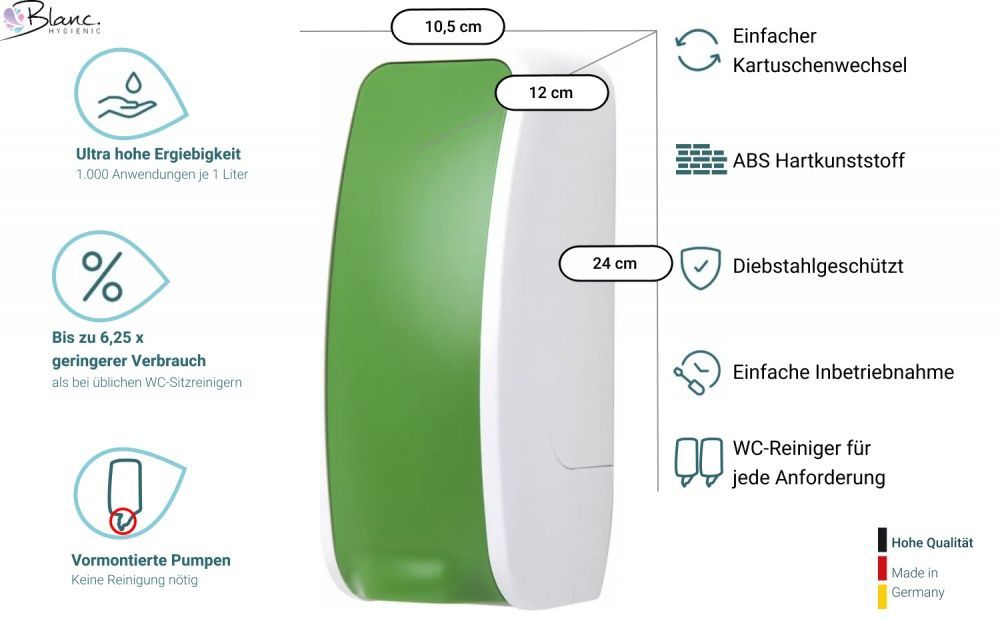 Spender für Toilettensitzreinigung Manuell bis zu 1.000 Anwendungen je 1-Liter, blitz