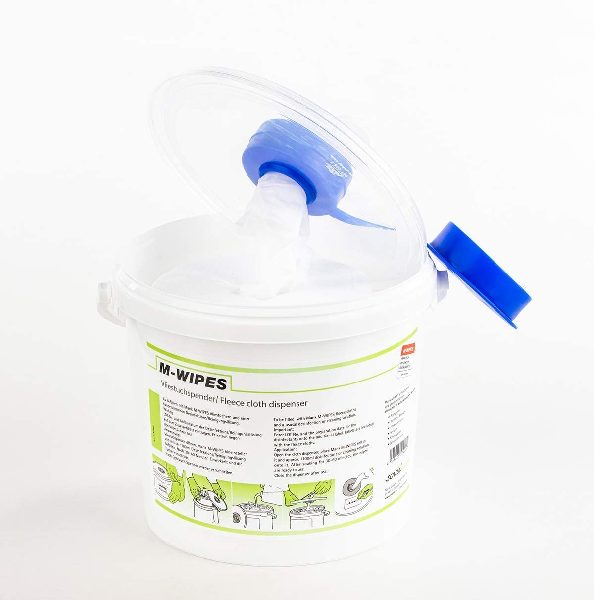 Spendereimer mit Vlies Reinigungstüchern auf Rolle - M-Wipes in Weiß