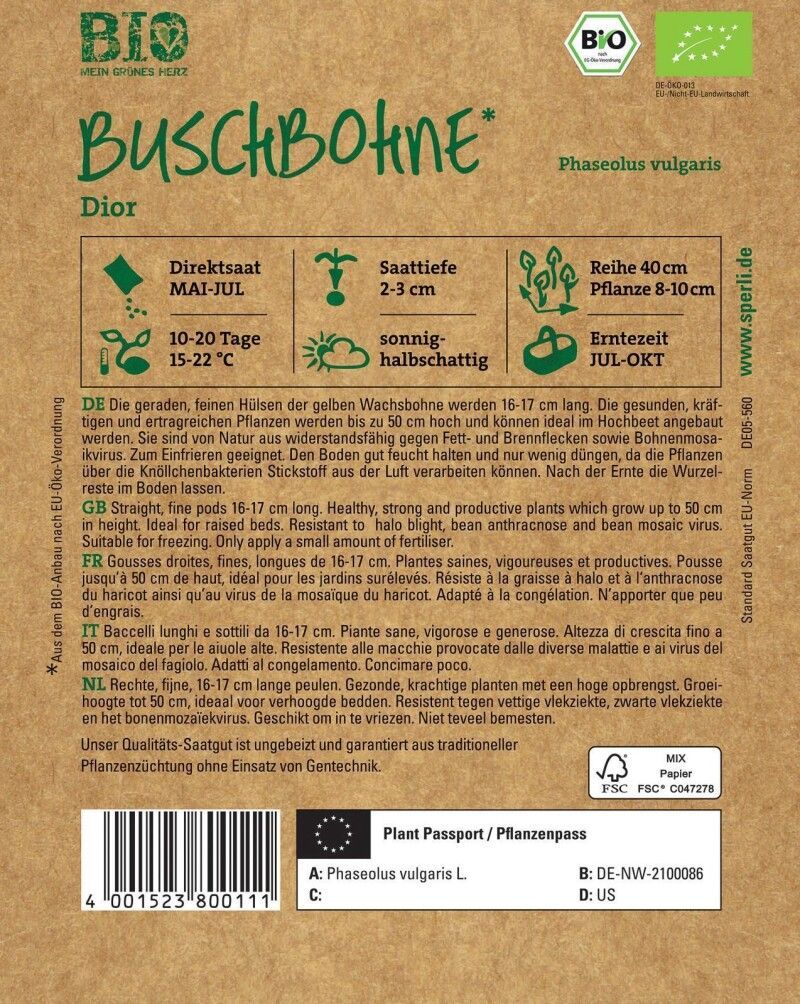 Sperli Sperli BIO Buschbohne gelb, von Natur aus widerstandsfähig, zum einfrieren