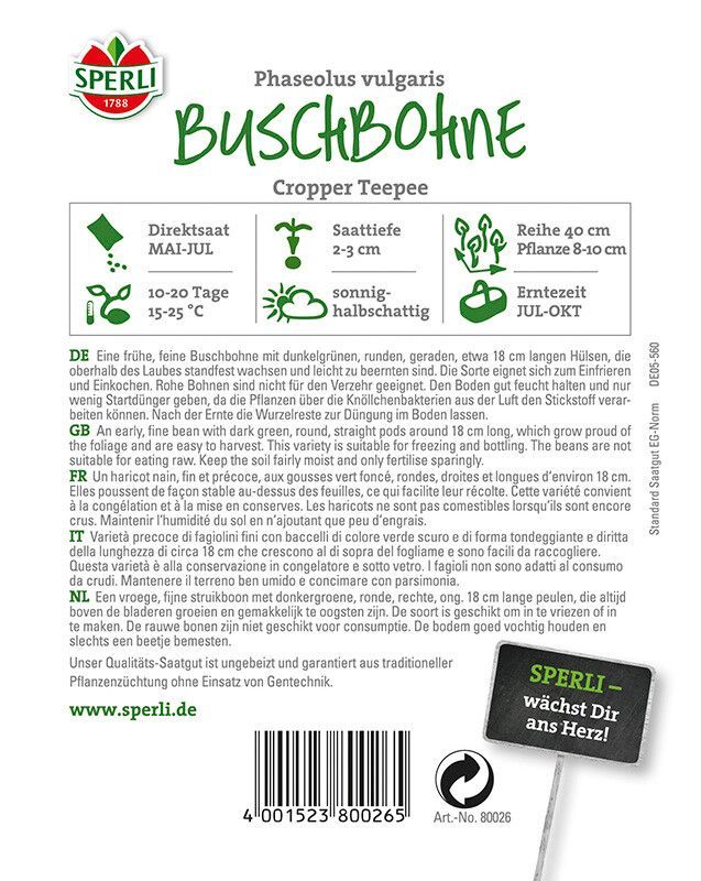 Sperli Sperli Buschbohnen Cropper Teepee Gluckentyp (verb. Daisy)