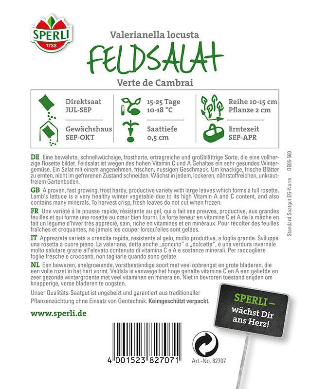 Sperli Sperli Feldsalat Verte de Cambrai (Rapunzel), winterhart & nährstoffreich