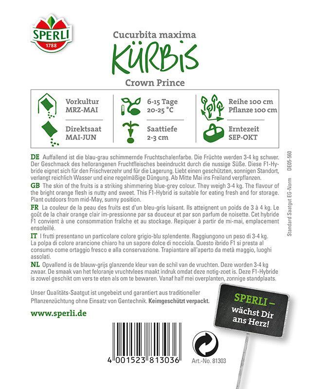 Sperli Sperli Kürbis Crown Prince F1, edle Schale in Blau-Grau
