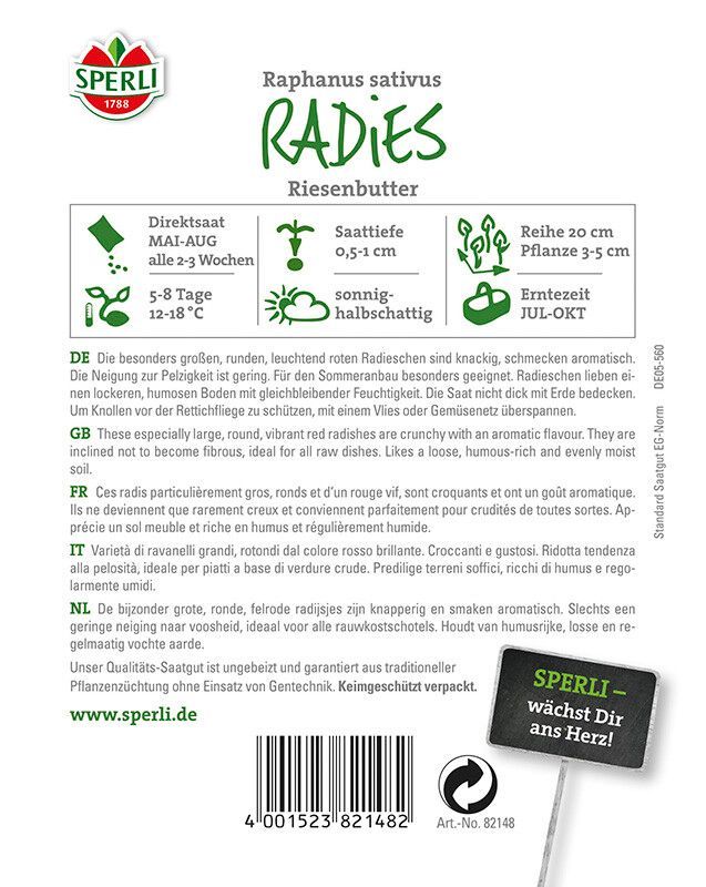 Sperli Sperli Radieschen Riesenbutter, große, runde Knollen